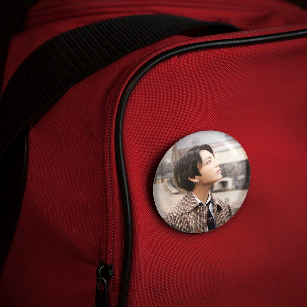پیکسل 44 میلی متری جونگ کوک Jung Kook گروه بی تی اس BTS خندالو با روکش سلفون حرارتی مات مخملی ضدخش و قطعه پشتی رنگی تولید شده است.پلاستیکی پشت پیکسل با سوزن یک تکه ثابت و بدون لغزش و جا به جایی، ایستایی بسیار بهتری نسبت به پشتی فلزی پیکسل دارند که این مهم در تولید این محصول نیز رعایت شده است.