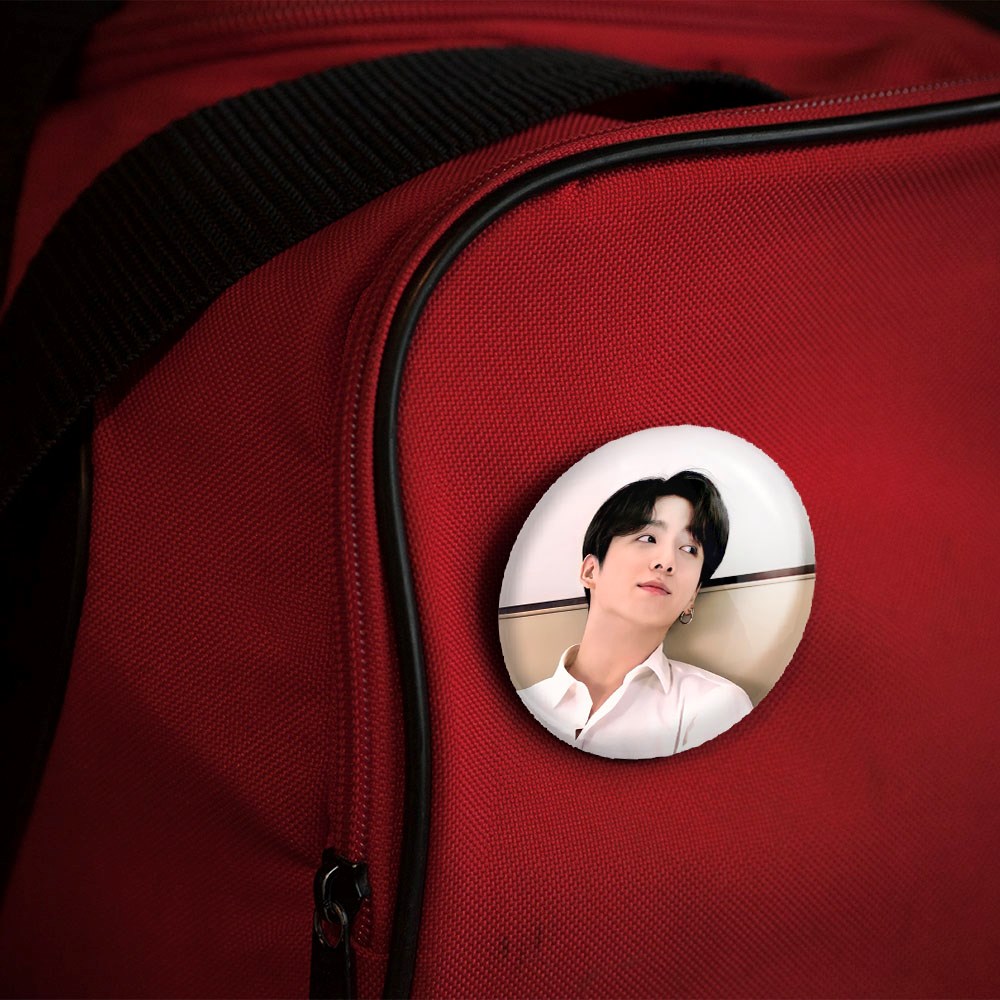 پیکسل 44 میلی متری جونگ کوک Jung Kook گروه بی تی اس BTS خندالو با روکش سلفون حرارتی مات مخملی ضدخش و قطعه پشتی رنگی تولید شده است.پلاستیکی پشت پیکسل با سوزن یک تکه ثابت و بدون لغزش و جا به جایی، ایستایی بسیار بهتری نسبت به پشتی فلزی پیکسل دارند که این مهم در تولید این محصول نیز رعایت شده است.