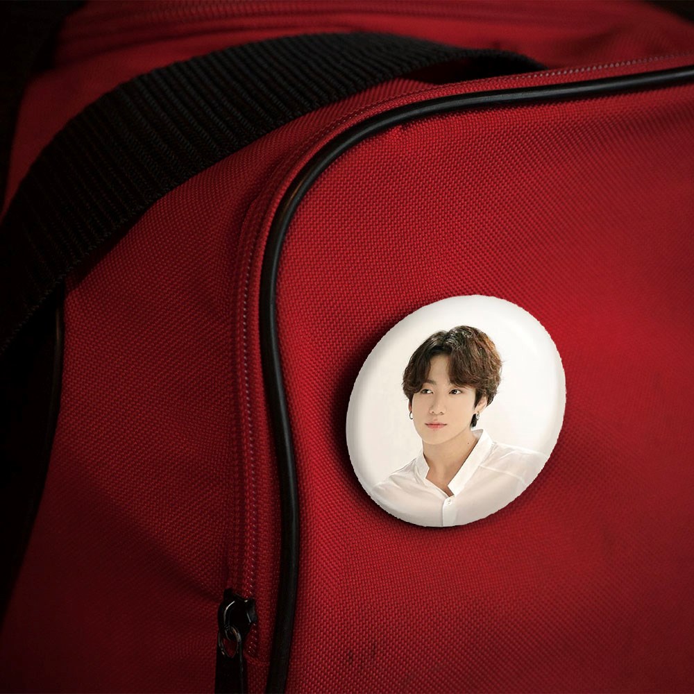 پیکسل 44 میلی متری جونگ کوک Jung Kook گروه بی تی اس BTS خندالو با روکش سلفون حرارتی مات مخملی ضدخش و قطعه پشتی رنگی تولید شده است.پلاستیکی پشت پیکسل با سوزن یک تکه ثابت و بدون لغزش و جا به جایی، ایستایی بسیار بهتری نسبت به پشتی فلزی پیکسل دارند که این مهم در تولید این محصول نیز رعایت شده است.