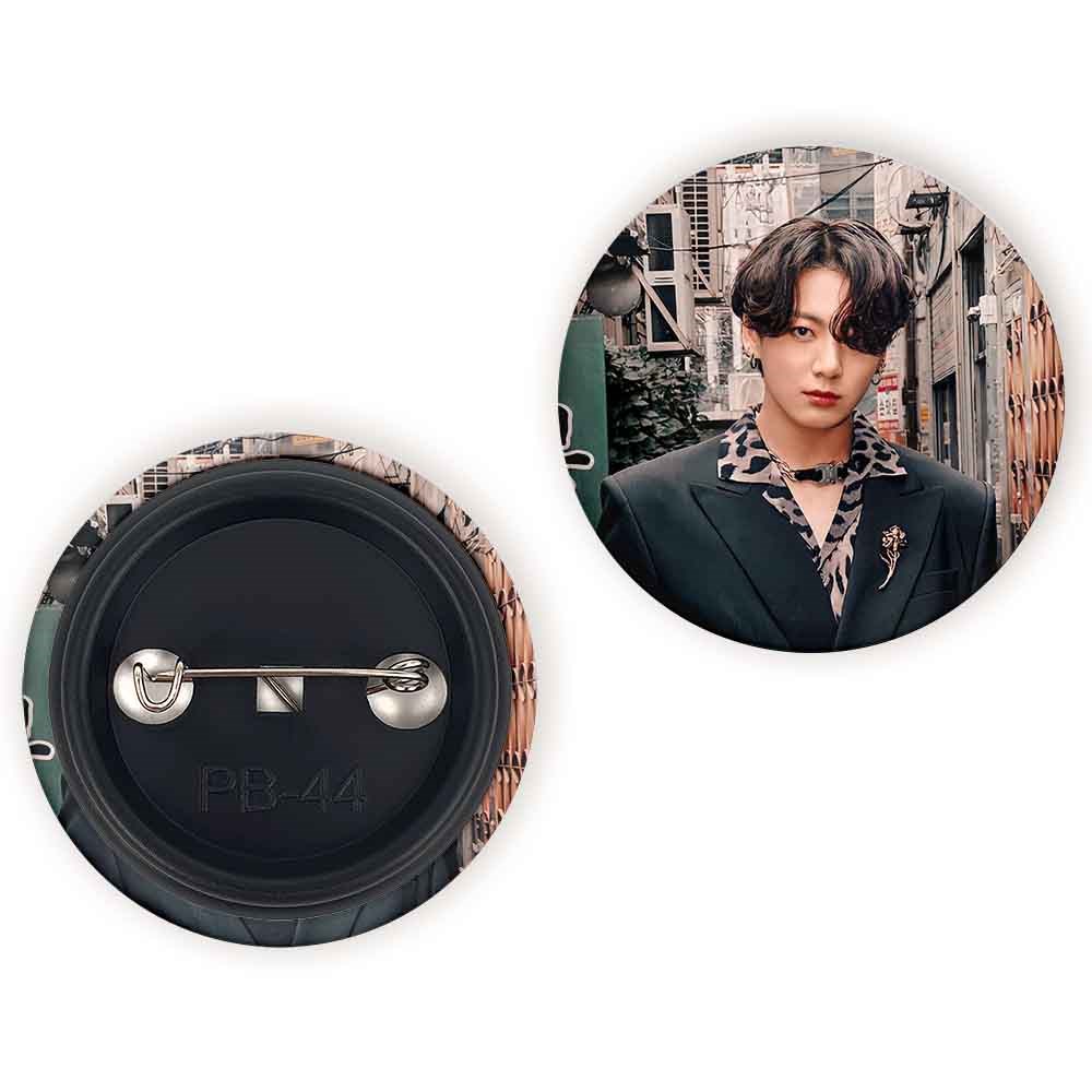 پیکسل 44 میلی متری جونگ کوک Jung Kook گروه بی تی اس BTS خندالو با روکش سلفون حرارتی مات مخملی ضدخش و قطعه پشتی رنگی تولید شده است.پلاستیکی پشت پیکسل با سوزن یک تکه ثابت و بدون لغزش و جا به جایی، ایستایی بسیار بهتری نسبت به پشتی فلزی پیکسل دارند که این مهم در تولید این محصول نیز رعایت شده است.