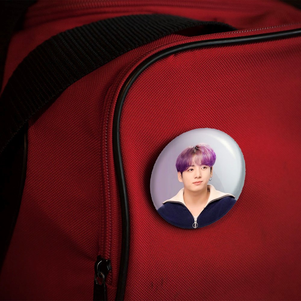 پیکسل 44 میلی متری جونگ کوک Jung Kook گروه بی تی اس BTS خندالو با روکش سلفون حرارتی مات مخملی ضدخش و قطعه پشتی رنگی تولید شده است.پلاستیکی پشت پیکسل با سوزن یک تکه ثابت و بدون لغزش و جا به جایی، ایستایی بسیار بهتری نسبت به پشتی فلزی پیکسل دارند که این مهم در تولید این محصول نیز رعایت شده است.
