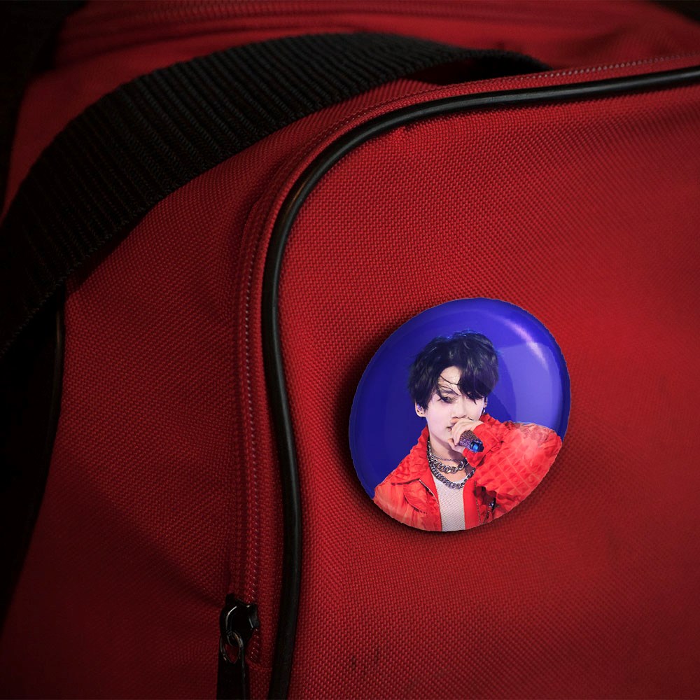 پیکسل 44 میلی متری جونگ کوک Jung Kook گروه بی تی اس BTS خندالو با روکش سلفون حرارتی مات مخملی ضدخش و قطعه پشتی رنگی تولید شده است.پلاستیکی پشت پیکسل با سوزن یک تکه ثابت و بدون لغزش و جا به جایی، ایستایی بسیار بهتری نسبت به پشتی فلزی پیکسل دارند که این مهم در تولید این محصول نیز رعایت شده است.