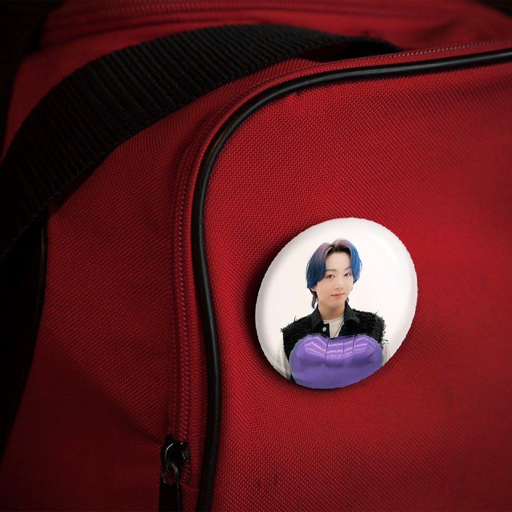 پیکسل 44 میلی متری جونگ کوک Jung Kook گروه بی تی اس BTS خندالو با روکش سلفون حرارتی مات مخملی ضدخش و قطعه پشتی رنگی تولید شده است.پلاستیکی پشت پیکسل با سوزن یک تکه ثابت و بدون لغزش و جا به جایی، ایستایی بسیار بهتری نسبت به پشتی فلزی پیکسل دارند که این مهم در تولید این محصول نیز رعایت شده است.