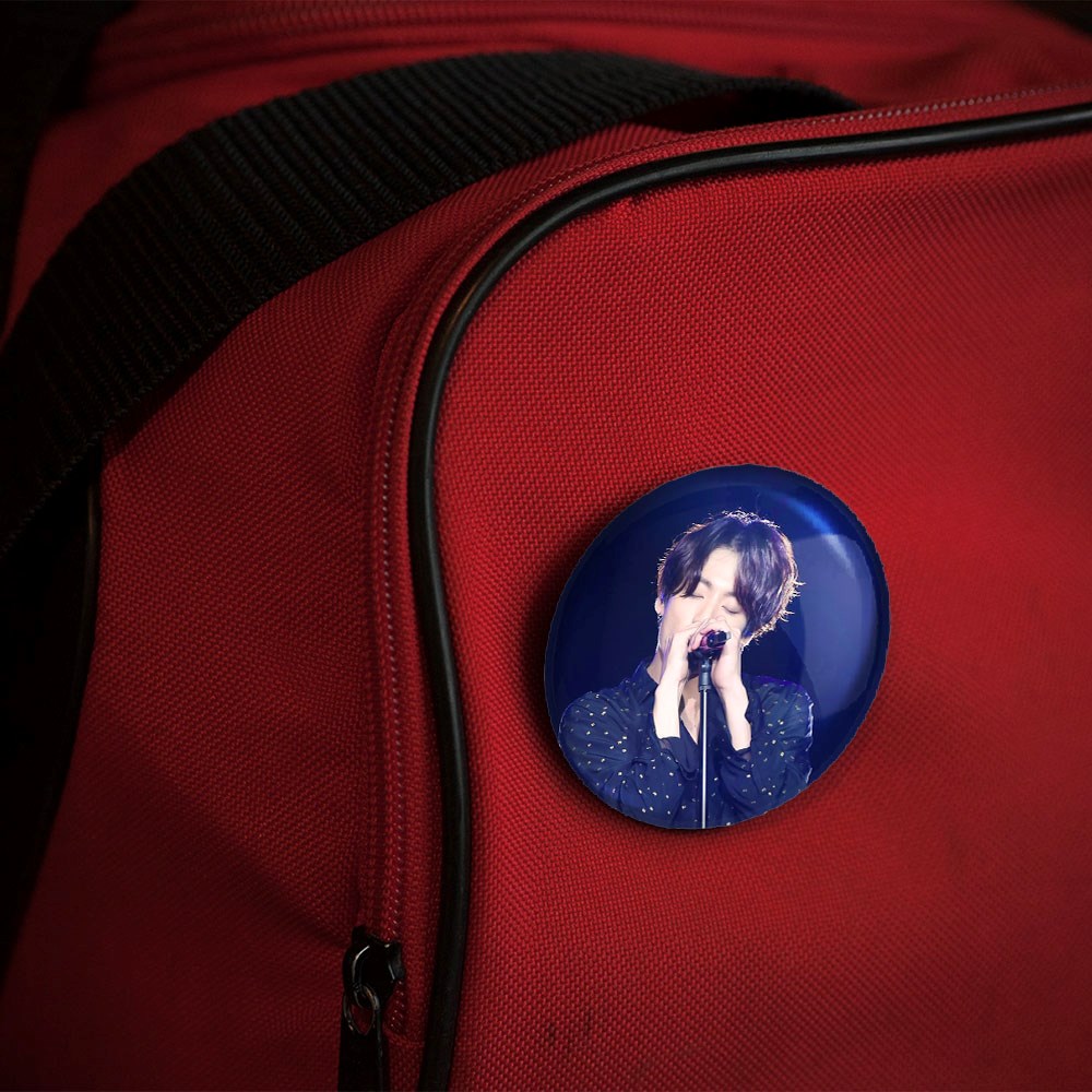 پیکسل 44 میلی متری جونگ کوک Jung Kook گروه بی تی اس BTS خندالو با روکش سلفون حرارتی مات مخملی ضدخش و قطعه پشتی رنگی تولید شده است.پلاستیکی پشت پیکسل با سوزن یک تکه ثابت و بدون لغزش و جا به جایی، ایستایی بسیار بهتری نسبت به پشتی فلزی پیکسل دارند که این مهم در تولید این محصول نیز رعایت شده است.