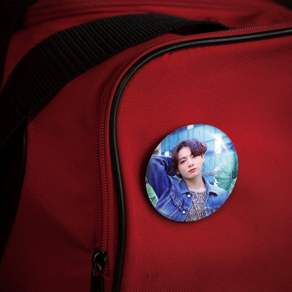 پیکسل 44 میلی متری جونگ کوک Jung Kook گروه بی تی اس BTS خندالو با روکش سلفون حرارتی مات مخملی ضدخش و قطعه پشتی رنگی تولید شده است.پلاستیکی پشت پیکسل با سوزن یک تکه ثابت و بدون لغزش و جا به جایی، ایستایی بسیار بهتری نسبت به پشتی فلزی پیکسل دارند که این مهم در تولید این محصول نیز رعایت شده است.