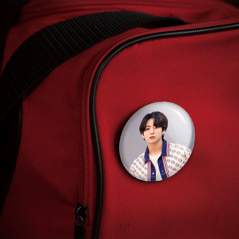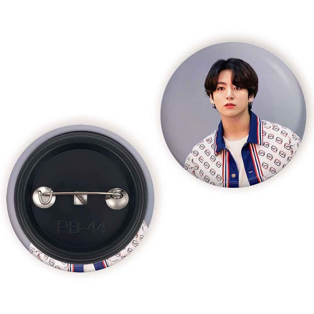 پیکسل 44 میلی متری جونگ کوک Jung Kook گروه بی تی اس BTS خندالو با روکش سلفون حرارتی مات مخملی ضدخش و قطعه پشتی رنگی تولید شده است.پلاستیکی پشت پیکسل با سوزن یک تکه ثابت و بدون لغزش و جا به جایی، ایستایی بسیار بهتری نسبت به پشتی فلزی پیکسل دارند که این مهم در تولید این محصول نیز رعایت شده است.