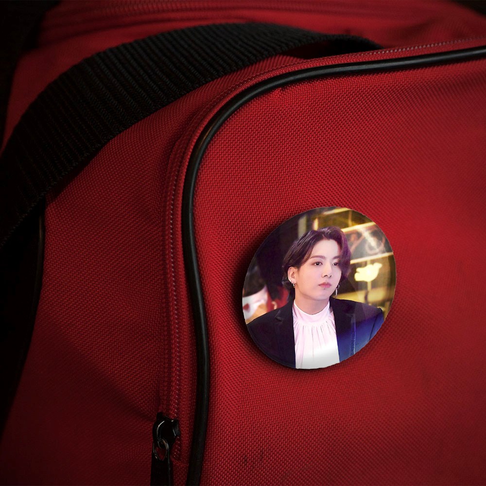 پیکسل 44 میلی متری جونگ کوک Jung Kook گروه بی تی اس BTS خندالو با روکش سلفون حرارتی مات مخملی ضدخش و قطعه پشتی رنگی تولید شده است.پلاستیکی پشت پیکسل با سوزن یک تکه ثابت و بدون لغزش و جا به جایی، ایستایی بسیار بهتری نسبت به پشتی فلزی پیکسل دارند که این مهم در تولید این محصول نیز رعایت شده است.