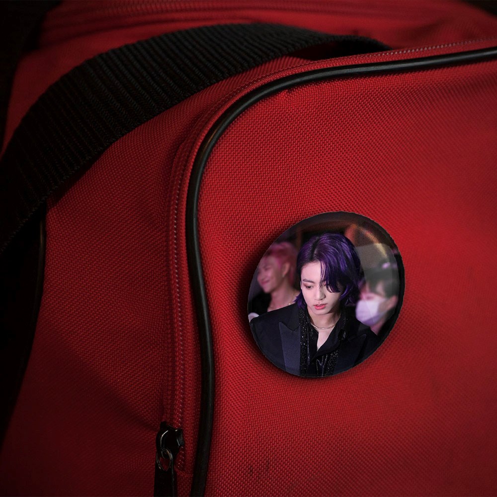 پیکسل 44 میلی متری جونگ کوک Jung Kook گروه بی تی اس BTS خندالو با روکش سلفون حرارتی مات مخملی ضدخش و قطعه پشتی رنگی تولید شده است.پلاستیکی پشت پیکسل با سوزن یک تکه ثابت و بدون لغزش و جا به جایی، ایستایی بسیار بهتری نسبت به پشتی فلزی پیکسل دارند که این مهم در تولید این محصول نیز رعایت شده است.
