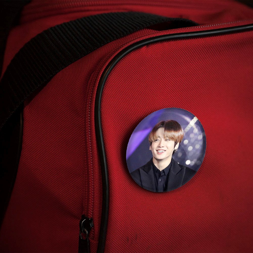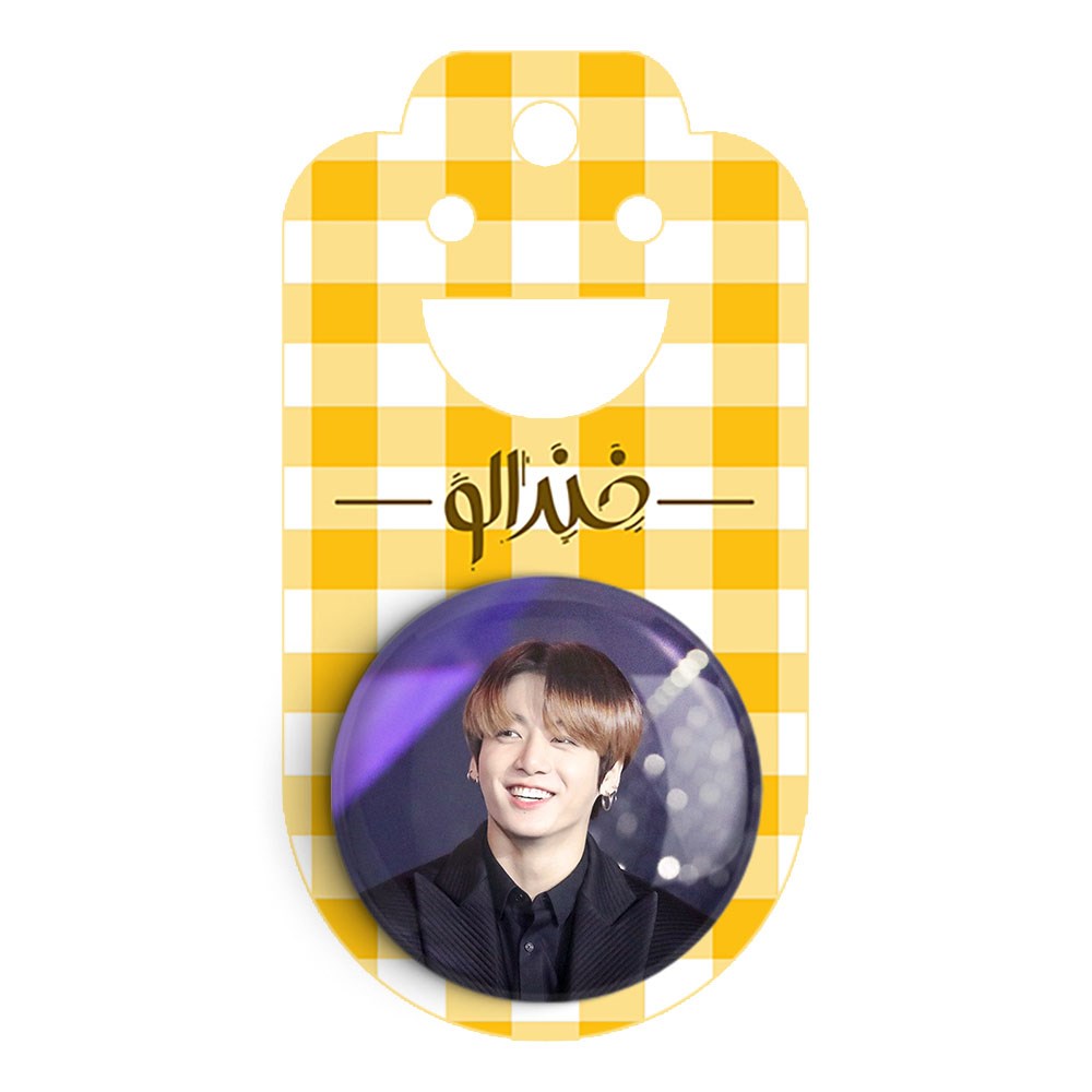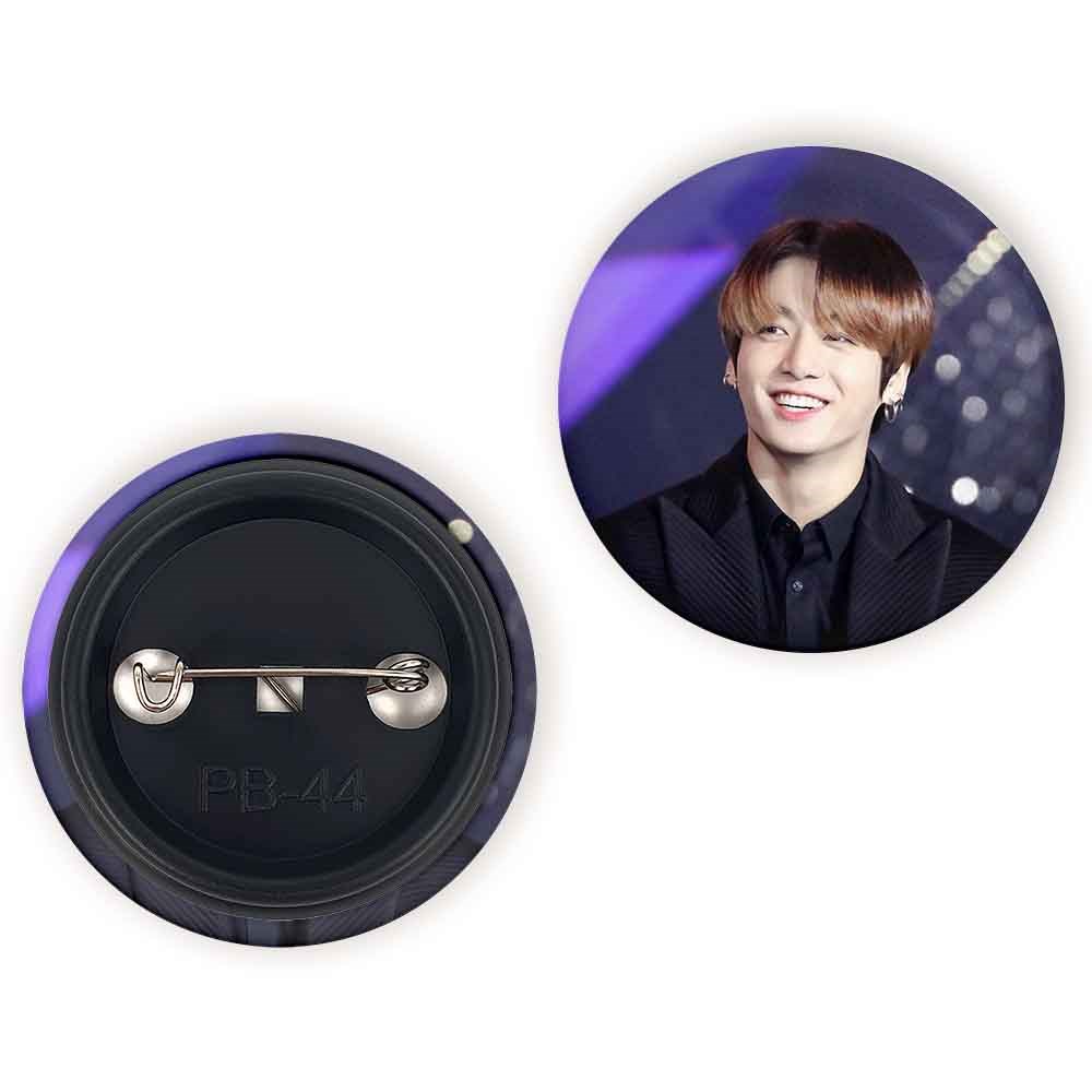 پیکسل 44 میلی متری جونگ کوک Jung Kook گروه بی تی اس BTS خندالو با روکش سلفون حرارتی مات مخملی ضدخش و قطعه پشتی رنگی تولید شده است.پلاستیکی پشت پیکسل با سوزن یک تکه ثابت و بدون لغزش و جا به جایی، ایستایی بسیار بهتری نسبت به پشتی فلزی پیکسل دارند که این مهم در تولید این محصول نیز رعایت شده است.