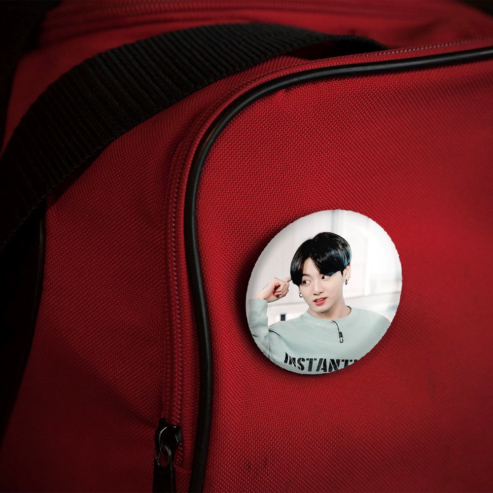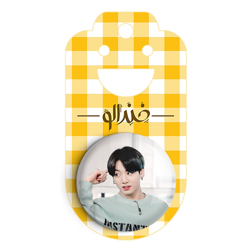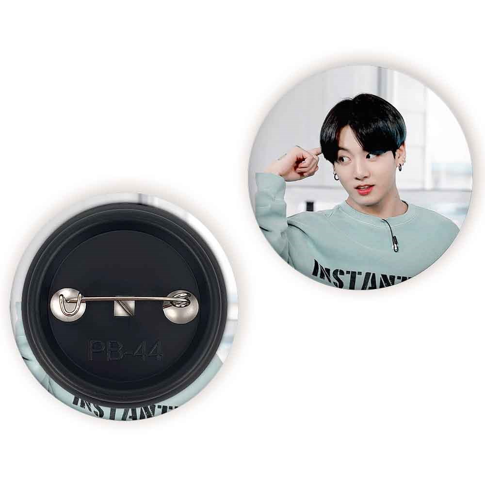 پیکسل 44 میلی متری جونگ کوک Jungkook گروه بی تی اس BTS خندالو با روکش سلفون حرارتی مات مخملی ضدخش و قطعه پشتی رنگی تولید شده است.پلاستیکی پشت پیکسل با سوزن یک تکه ثابت و بدون لغزش و جا به جایی، ایستایی بسیار بهتری نسبت به پشتی فلزی پیکسل دارند که این مهم در تولید این محصول نیز رعایت شده است.