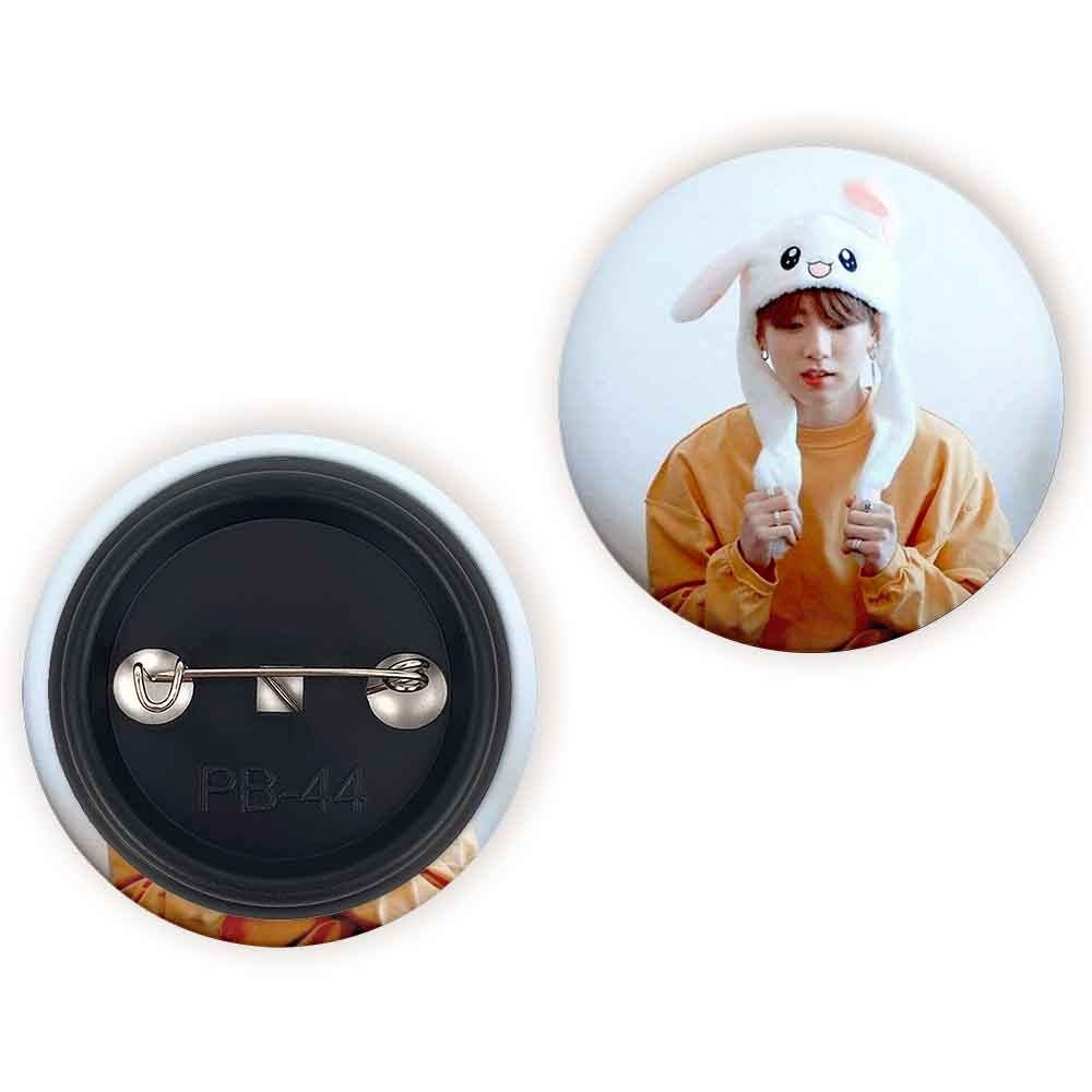 پیکسل 44 میلی متری جونگ کوک Jungkook گروه بی تی اس BTS خندالو با روکش سلفون حرارتی مات مخملی ضدخش و قطعه پشتی رنگی تولید شده است.پلاستیکی پشت پیکسل با سوزن یک تکه ثابت و بدون لغزش و جا به جایی، ایستایی بسیار بهتری نسبت به پشتی فلزی پیکسل دارند که این مهم در تولید این محصول نیز رعایت شده است.