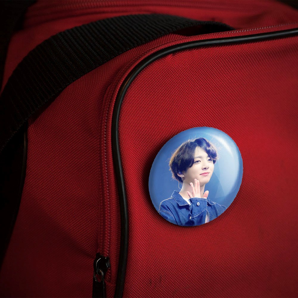 پیکسل 44 میلی متری جونگ کوک Jungkook گروه بی تی اس BTS خندالو با روکش سلفون حرارتی مات مخملی ضدخش و قطعه پشتی رنگی تولید شده است.پلاستیکی پشت پیکسل با سوزن یک تکه ثابت و بدون لغزش و جا به جایی، ایستایی بسیار بهتری نسبت به پشتی فلزی پیکسل دارند که این مهم در تولید این محصول نیز رعایت شده است.