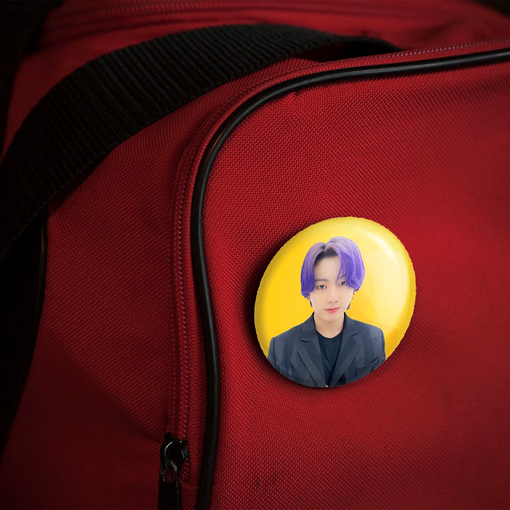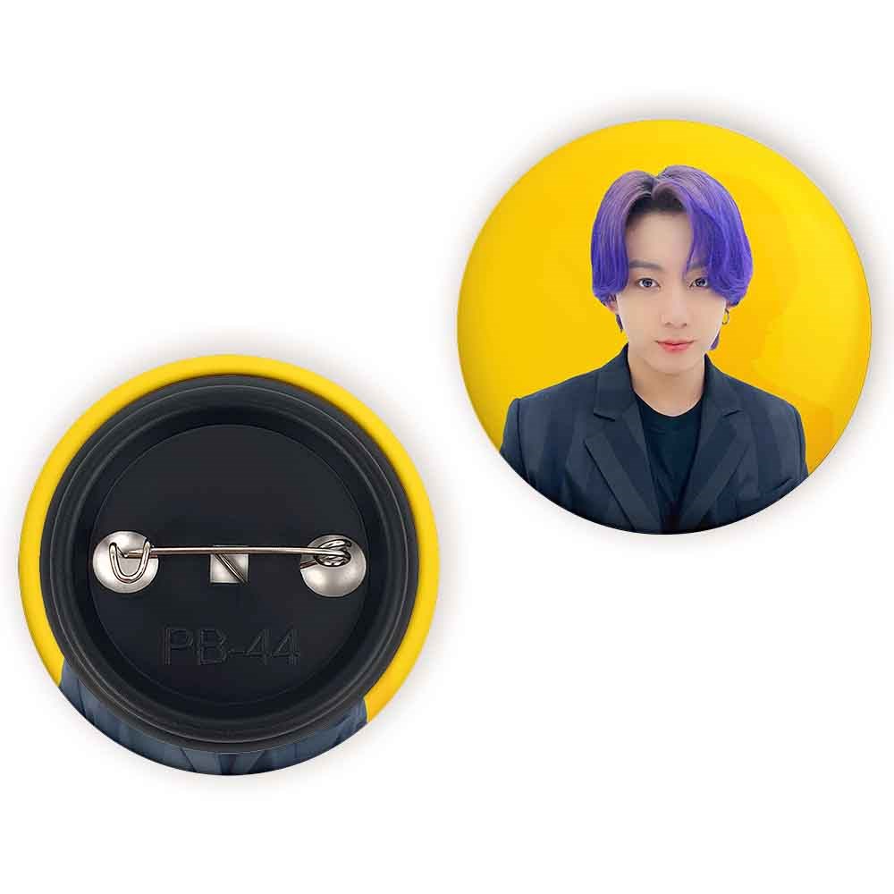 پیکسل 44 میلی متری جونگ کوک Jungkook گروه بی تی اس BTS خندالو با روکش سلفون حرارتی مات مخملی ضدخش و قطعه پشتی رنگی تولید شده است.پلاستیکی پشت پیکسل با سوزن یک تکه ثابت و بدون لغزش و جا به جایی، ایستایی بسیار بهتری نسبت به پشتی فلزی پیکسل دارند که این مهم در تولید این محصول نیز رعایت شده است.