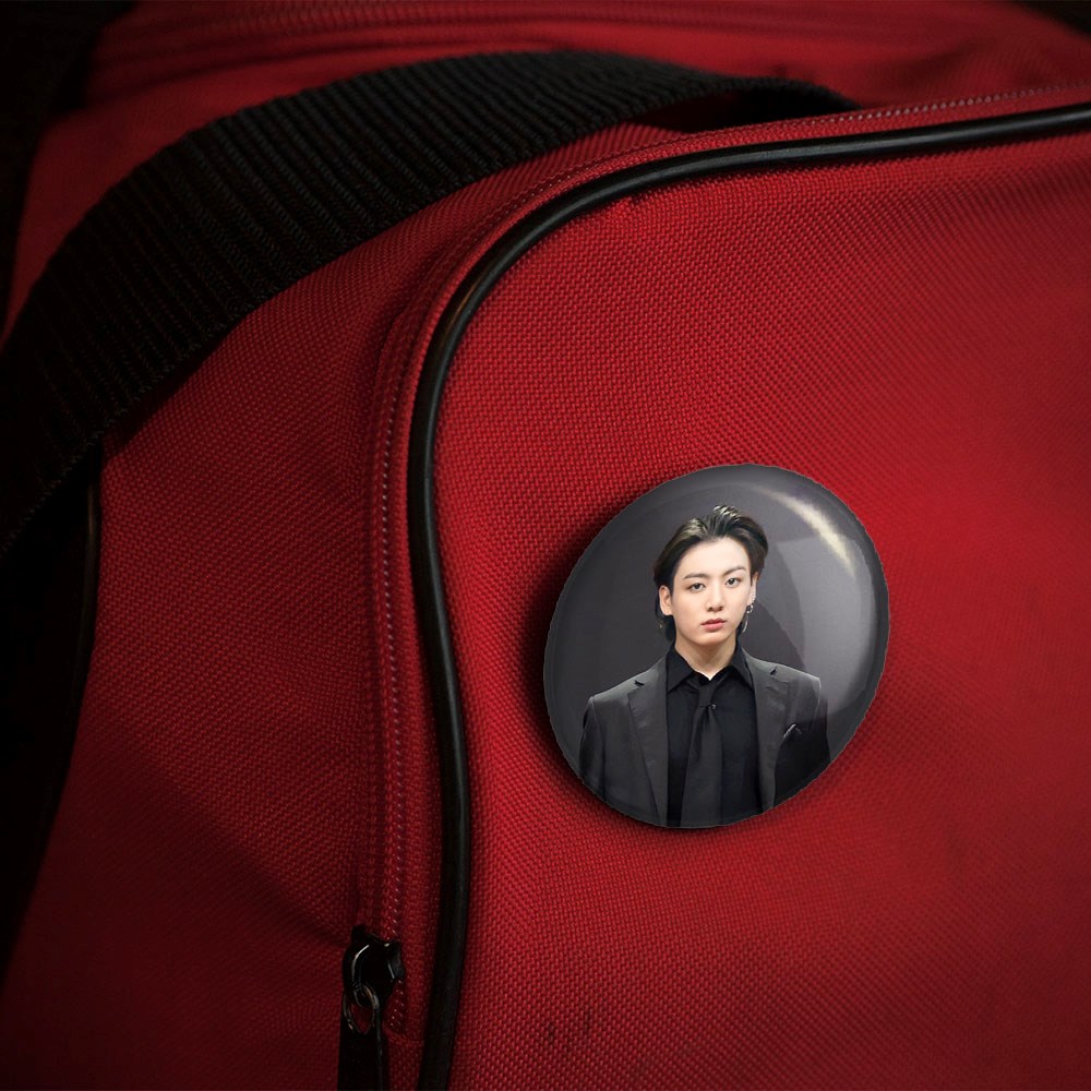پیکسل 44 میلی متری جونگ کوک Jungkook گروه بی تی اس BTS خندالو با روکش سلفون حرارتی مات مخملی ضدخش و قطعه پشتی رنگی تولید شده است.پلاستیکی پشت پیکسل با سوزن یک تکه ثابت و بدون لغزش و جا به جایی، ایستایی بسیار بهتری نسبت به پشتی فلزی پیکسل دارند که این مهم در تولید این محصول نیز رعایت شده است.