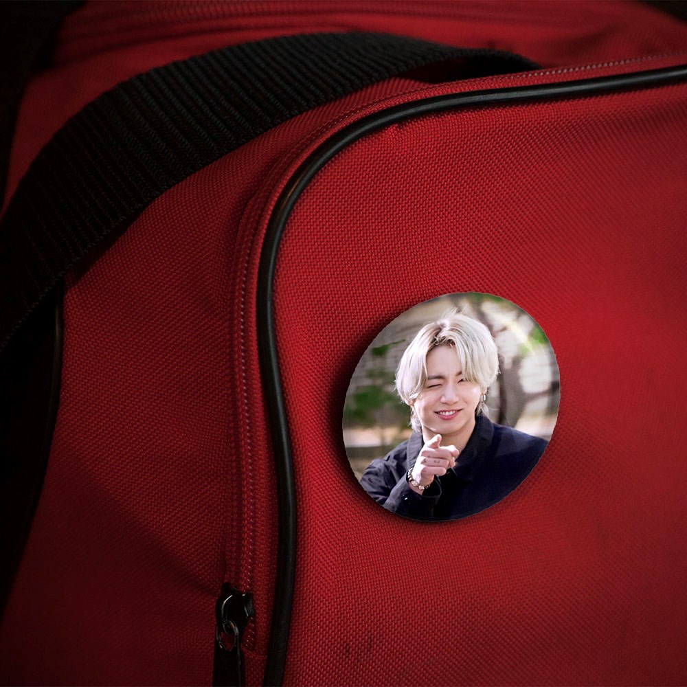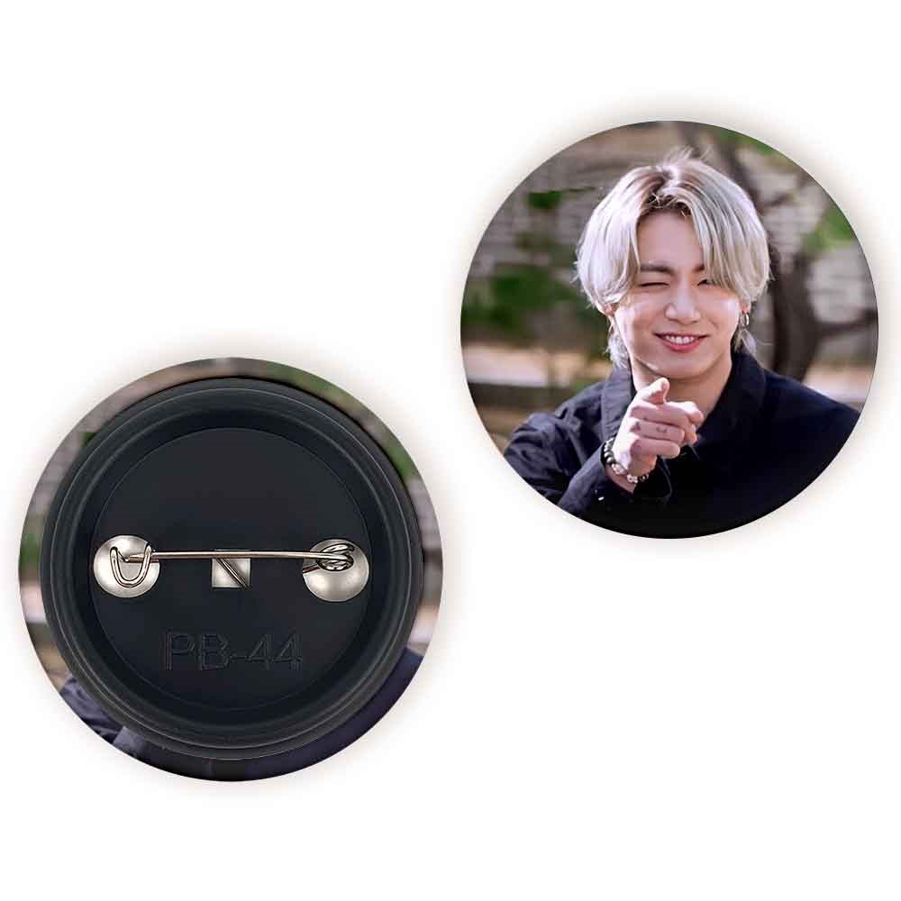 پیکسل 44 میلی متری جونگ کوک Jungkook گروه بی تی اس BTS خندالو با روکش سلفون حرارتی مات مخملی ضدخش و قطعه پشتی رنگی تولید شده است.پلاستیکی پشت پیکسل با سوزن یک تکه ثابت و بدون لغزش و جا به جایی، ایستایی بسیار بهتری نسبت به پشتی فلزی پیکسل دارند که این مهم در تولید این محصول نیز رعایت شده است.