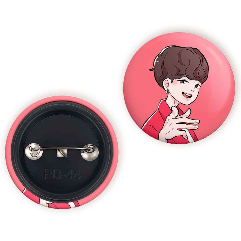 پیکسل 44 میلی متری جونگ کوک Jungkook گروه بی تی اس BTS خندالو با روکش سلفون حرارتی مات مخملی ضدخش و قطعه پشتی رنگی تولید شده است.پلاستیکی پشت پیکسل با سوزن یک تکه ثابت و بدون لغزش و جا به جایی، ایستایی بسیار بهتری نسبت به پشتی فلزی پیکسل دارند که این مهم در تولید این محصول نیز رعایت شده است.