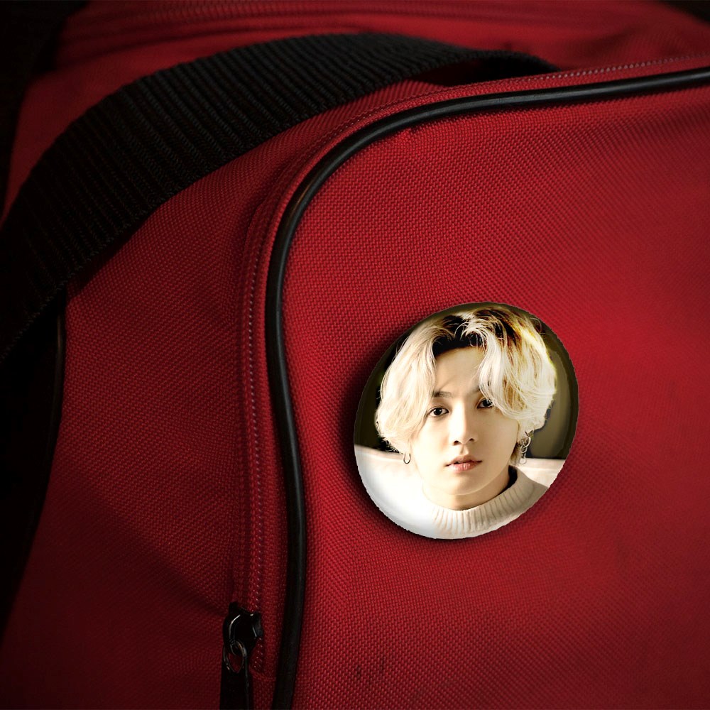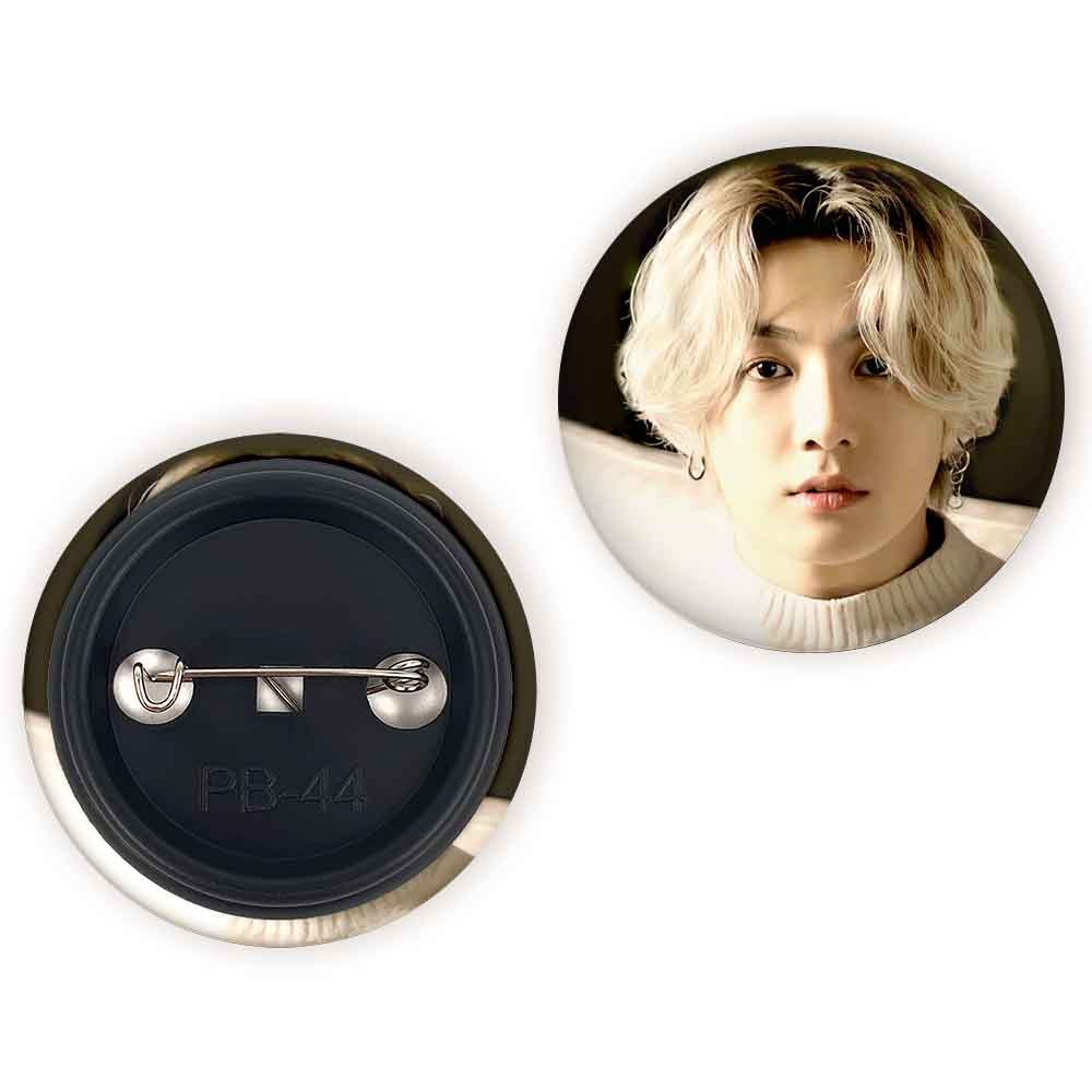 پیکسل 44 میلی متری جونگ کوک Jungkook گروه بی تی اس BTS خندالو با روکش سلفون حرارتی مات مخملی ضدخش و قطعه پشتی رنگی تولید شده است.پلاستیکی پشت پیکسل با سوزن یک تکه ثابت و بدون لغزش و جا به جایی، ایستایی بسیار بهتری نسبت به پشتی فلزی پیکسل دارند که این مهم در تولید این محصول نیز رعایت شده است.