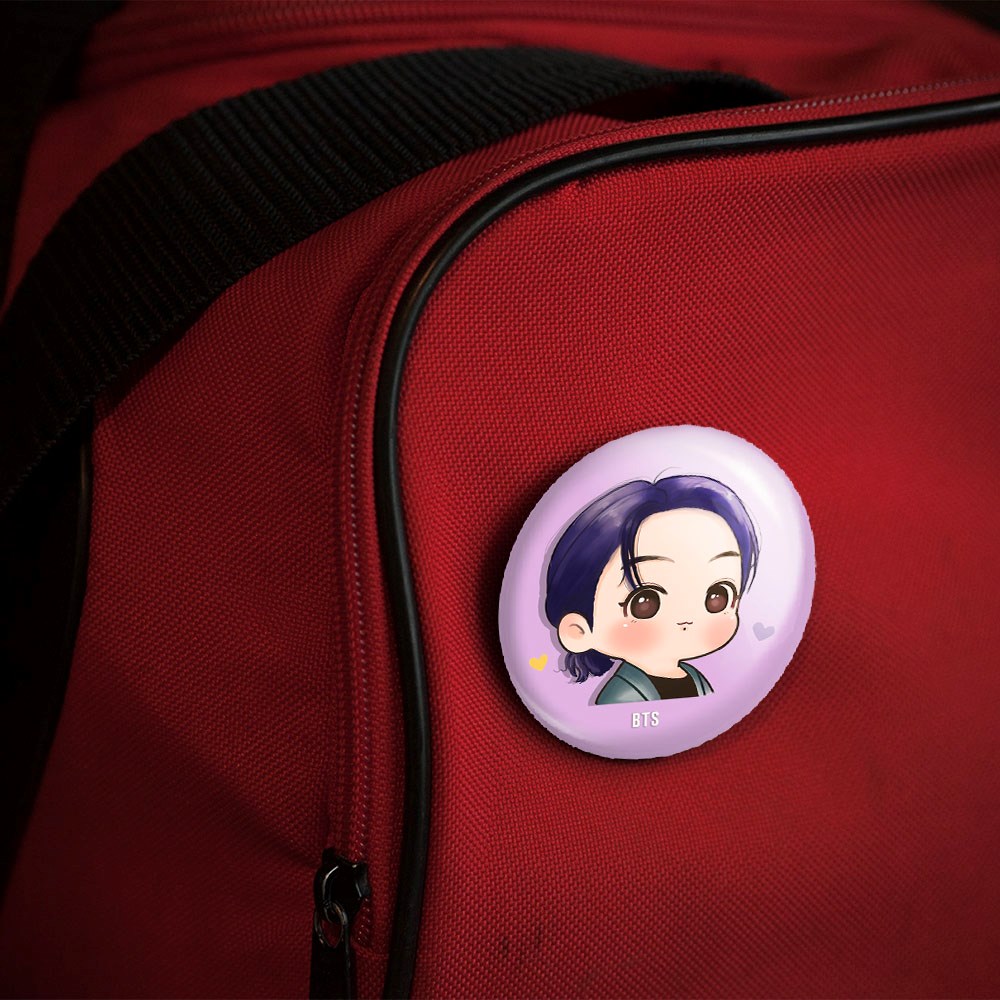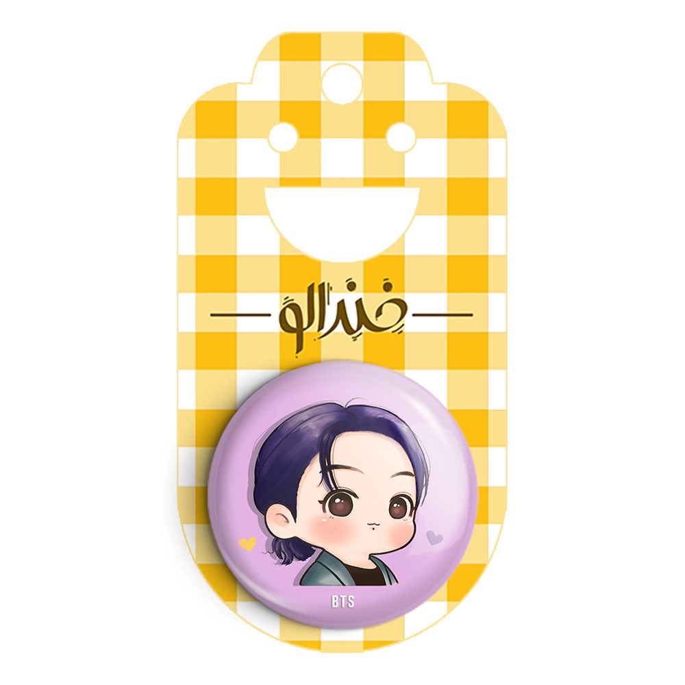 پیکسل 44 میلی متری جونگ کوک Jungkook گروه بی تی اس BTS خندالو با روکش سلفون حرارتی مات مخملی ضدخش و قطعه پشتی رنگی تولید شده است.پلاستیکی پشت پیکسل با سوزن یک تکه ثابت و بدون لغزش و جا به جایی، ایستایی بسیار بهتری نسبت به پشتی فلزی پیکسل دارند که این مهم در تولید این محصول نیز رعایت شده است.