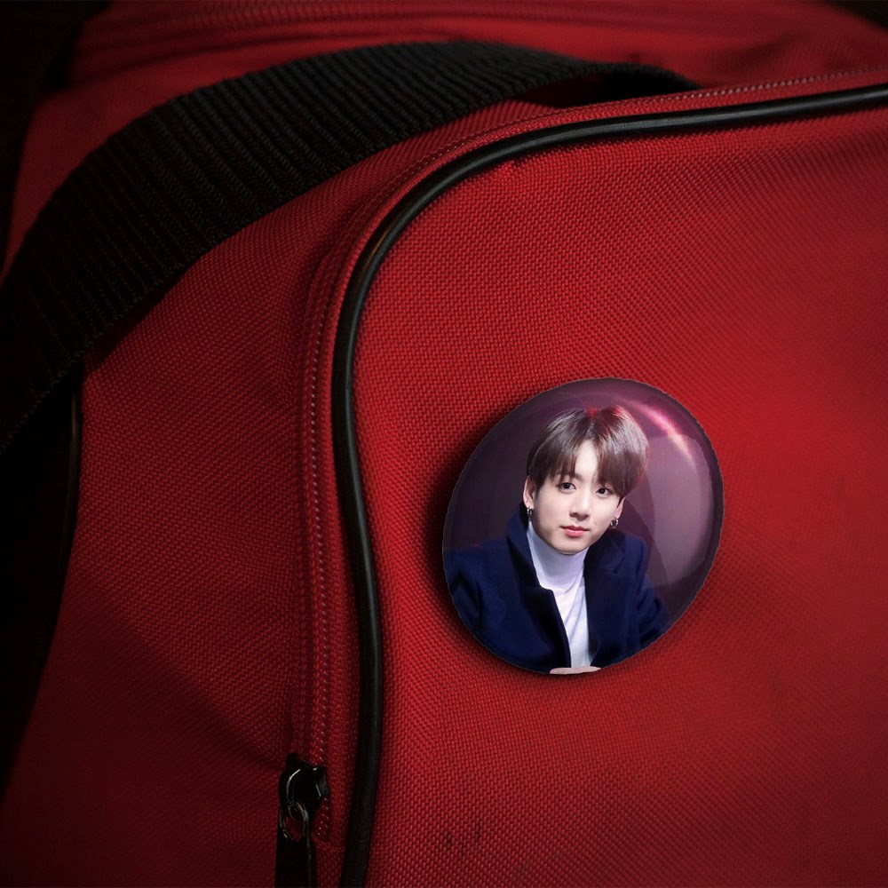پیکسل 44 میلی متری جونگ کوک Jungkook گروه بی تی اس BTS خندالو با روکش سلفون حرارتی مات مخملی ضدخش و قطعه پشتی رنگی تولید شده است.پلاستیکی پشت پیکسل با سوزن یک تکه ثابت و بدون لغزش و جا به جایی، ایستایی بسیار بهتری نسبت به پشتی فلزی پیکسل دارند که این مهم در تولید این محصول نیز رعایت شده است.