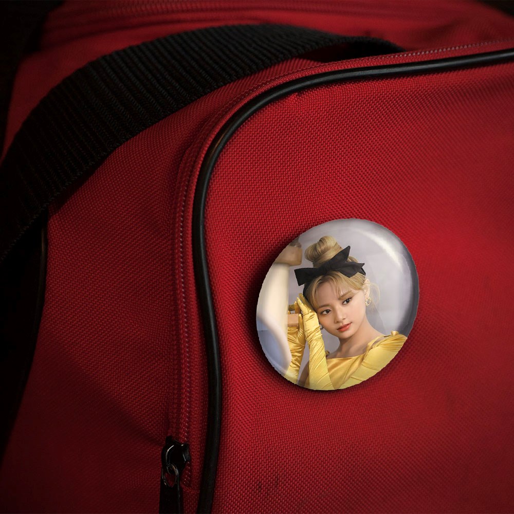 پیکسل 44 میلی متری جویی گروه توایس TWICE خندالو با روکش سلفون حرارتی مات مخملی ضدخش و قطعه پشتی رنگی تولید شده است.پلاستیکی پشت پیکسل با سوزن یک تکه ثابت و بدون لغزش و جا به جایی، ایستایی بسیار بهتری نسبت به پشتی فلزی پیکسل دارند که این مهم در تولید این محصول نیز رعایت شده است.