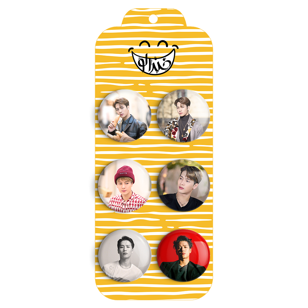 مجموعه 6 عددی پیکسل خندالو طرح جکسون Got 7 با روکش سلفون حرارتی براق ضدخش و قطعه پشتی رنگی تولید شده است. قطعات پشتی از میان 6 رنگ سفید، مشکی، صورتی، زرد، آبی و قرمز که با توجه به نوع و رنگبندی طرح روی پیکسل انتخاب شده اند تولید می شود و در هر بسته بندی مطابق عکس محصول می باشد.