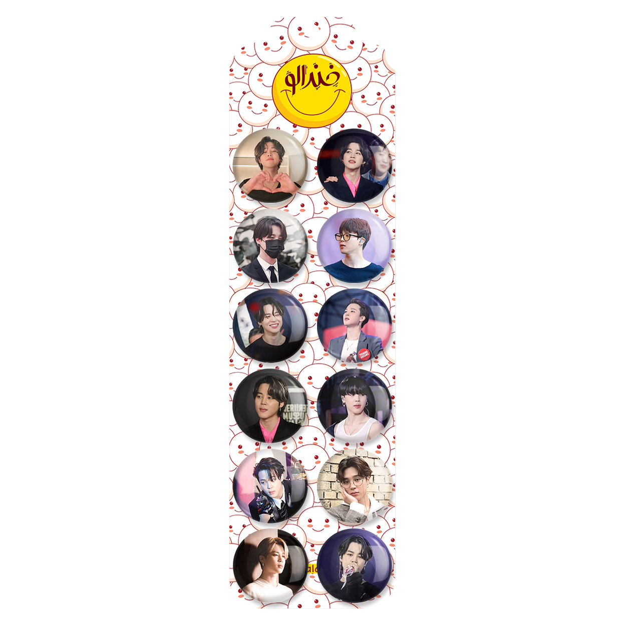 پک 12 عددی پیکسل خندالو طرح جیمین (Jimin) بی تی اس BTS با روکش سلفون حرارتی براق ضدخش و قطعه پشتی رنگی تولید شده است. قطعات پشتی از میان 6 رنگ سفید، مشکی، صورتی، زرد، آبی و قرمز که با توجه به نوع و رنگبندی طرح روی پیکسل انتخاب شده اند تولید می شود و در هر بسته بندی مطابق عکس محصول می باشد. قطعات پلاستیکی پشت پیکسل با سوزن یک تکه ثابت و بدون لغزش و جا به جایی، ایستایی بسیار بهتری نسبت به پشتی فلزی پیکسل دارند که این مهم در تولید این محصول نیز رعایت شده است.