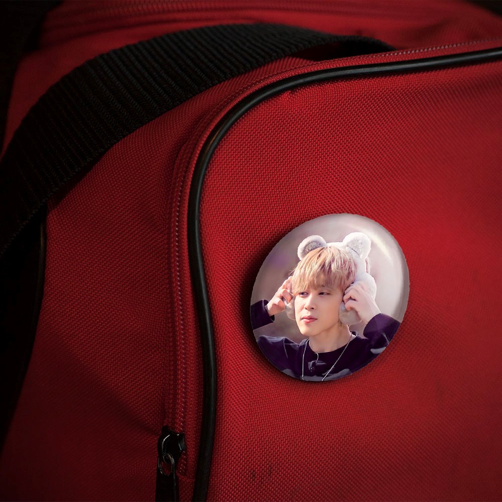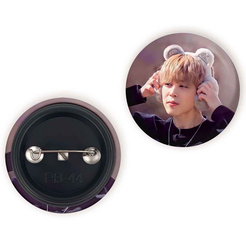پیکسل 44 میلی متری جیمین Jimin گروه بی تی اس BTS خندالو با روکش سلفون حرارتی مات مخملی ضدخش و قطعه پشتی رنگی تولید شده است.پلاستیکی پشت پیکسل با سوزن یک تکه ثابت و بدون لغزش و جا به جایی، ایستایی بسیار بهتری نسبت به پشتی فلزی پیکسل دارند که این مهم در تولید این محصول نیز رعایت شده است.