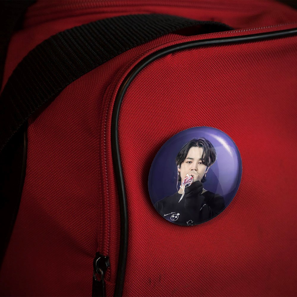 پیکسل 44 میلی متری جیمین Jimin گروه بی تی اس BTS خندالو با روکش سلفون حرارتی مات مخملی ضدخش و قطعه پشتی رنگی تولید شده است.پلاستیکی پشت پیکسل با سوزن یک تکه ثابت و بدون لغزش و جا به جایی، ایستایی بسیار بهتری نسبت به پشتی فلزی پیکسل دارند که این مهم در تولید این محصول نیز رعایت شده است.