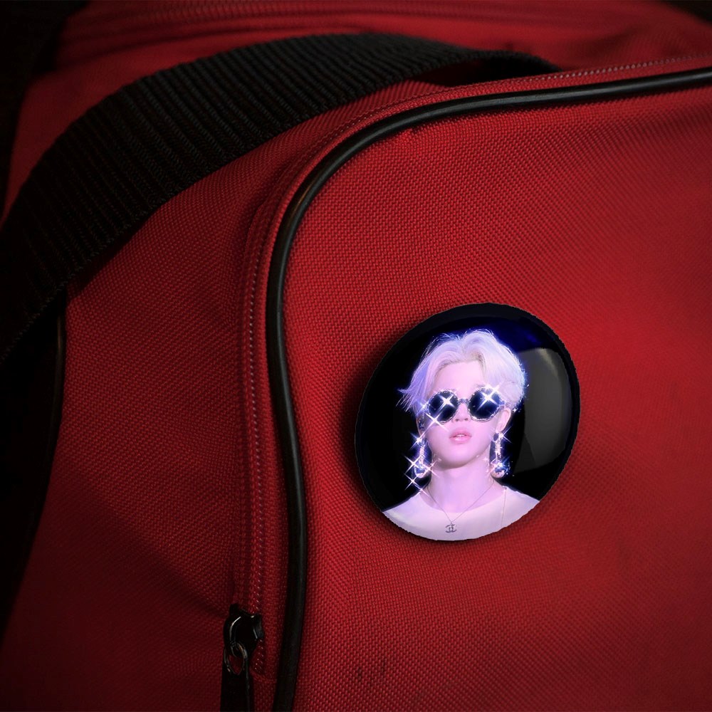 پیکسل 44 میلی متری جیمین Jimin گروه بی تی اس BTS خندالو با روکش سلفون حرارتی مات مخملی ضدخش و قطعه پشتی رنگی تولید شده است.پلاستیکی پشت پیکسل با سوزن یک تکه ثابت و بدون لغزش و جا به جایی، ایستایی بسیار بهتری نسبت به پشتی فلزی پیکسل دارند که این مهم در تولید این محصول نیز رعایت شده است.