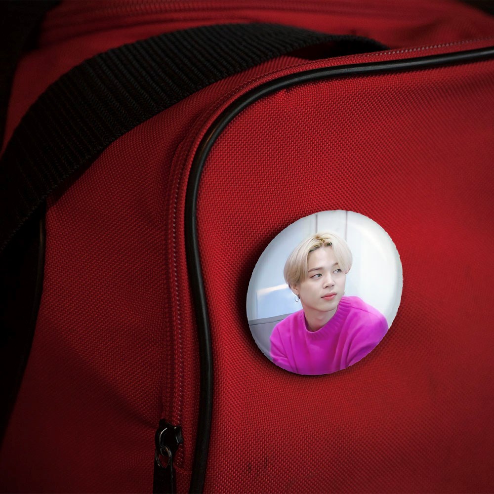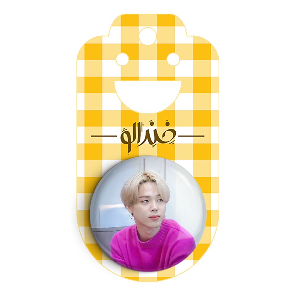 پیکسل 44 میلی متری جیمین Jimin گروه بی تی اس BTS خندالو با روکش سلفون حرارتی مات مخملی ضدخش و قطعه پشتی رنگی تولید شده است.پلاستیکی پشت پیکسل با سوزن یک تکه ثابت و بدون لغزش و جا به جایی، ایستایی بسیار بهتری نسبت به پشتی فلزی پیکسل دارند که این مهم در تولید این محصول نیز رعایت شده است.