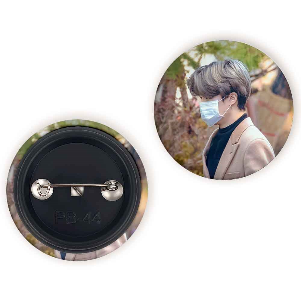 پیکسل 44 میلی متری جیمین Jimin گروه بی تی اس BTS خندالو با روکش سلفون حرارتی مات مخملی ضدخش و قطعه پشتی رنگی تولید شده است.پلاستیکی پشت پیکسل با سوزن یک تکه ثابت و بدون لغزش و جا به جایی، ایستایی بسیار بهتری نسبت به پشتی فلزی پیکسل دارند که این مهم در تولید این محصول نیز رعایت شده است.