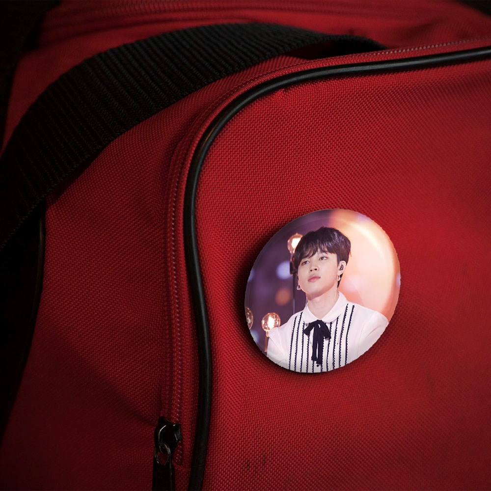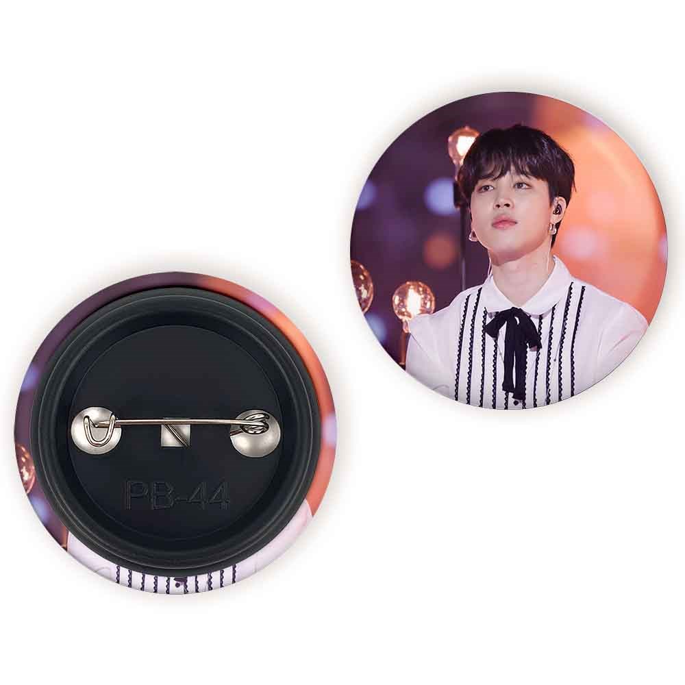 پیکسل 44 میلی متری جیمین Jimin گروه بی تی اس BTS خندالو با روکش سلفون حرارتی مات مخملی ضدخش و قطعه پشتی رنگی تولید شده است.پلاستیکی پشت پیکسل با سوزن یک تکه ثابت و بدون لغزش و جا به جایی، ایستایی بسیار بهتری نسبت به پشتی فلزی پیکسل دارند که این مهم در تولید این محصول نیز رعایت شده است.