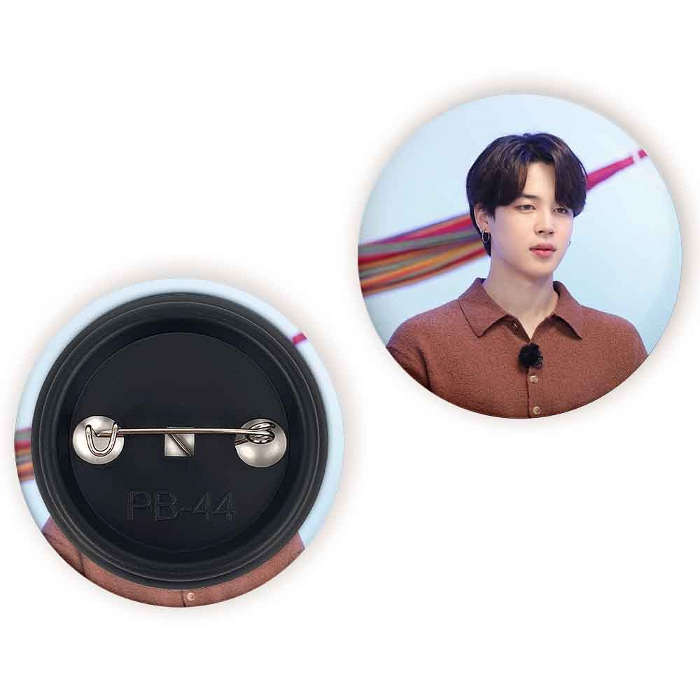 پیکسل 44 میلی متری جیمین Jimin گروه بی تی اس BTS خندالو با روکش سلفون حرارتی مات مخملی ضدخش و قطعه پشتی رنگی تولید شده است.پلاستیکی پشت پیکسل با سوزن یک تکه ثابت و بدون لغزش و جا به جایی، ایستایی بسیار بهتری نسبت به پشتی فلزی پیکسل دارند که این مهم در تولید این محصول نیز رعایت شده است.