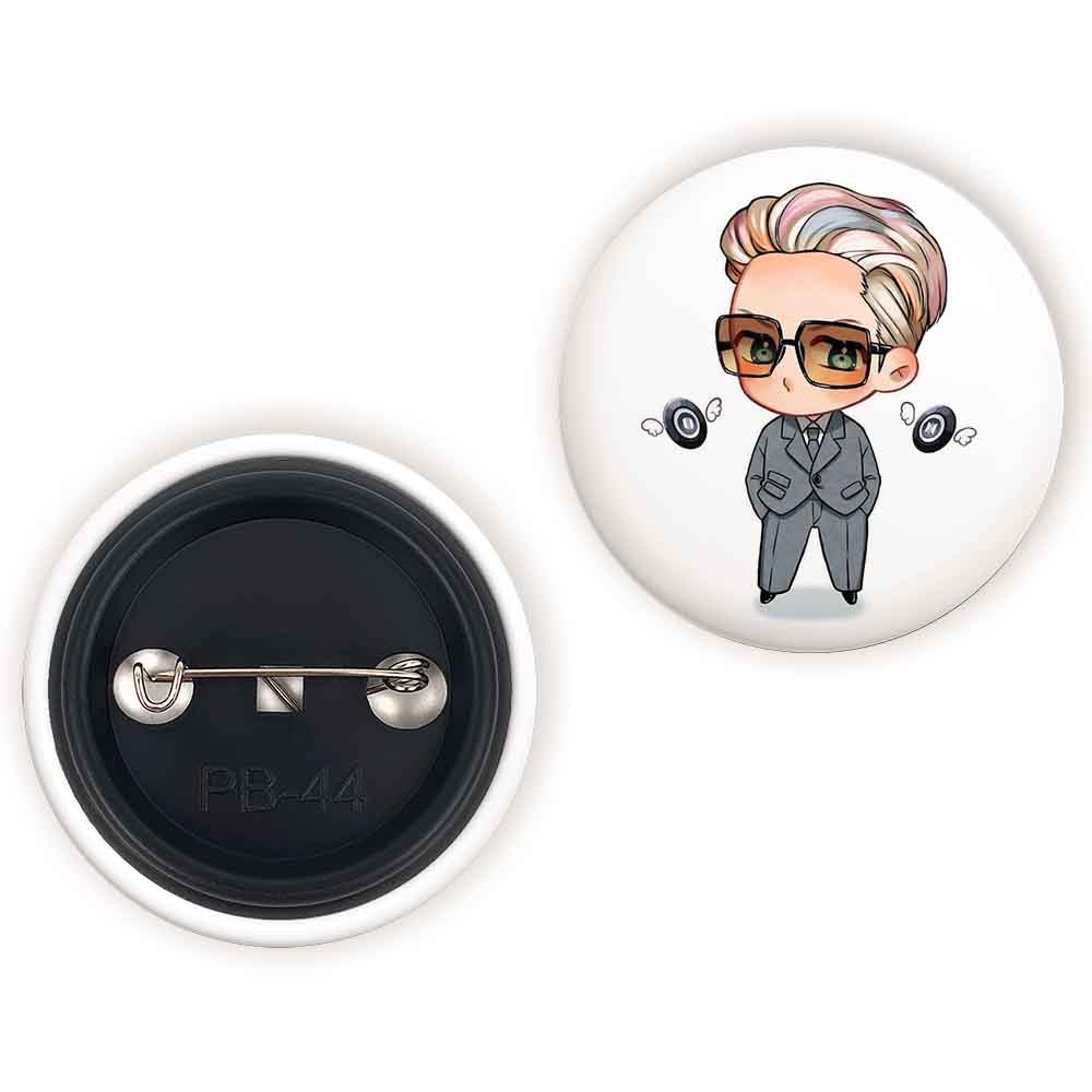 پیکسل 44 میلی متری جیمین Jimin گروه بی تی اس BTS خندالو با روکش سلفون حرارتی مات مخملی ضدخش و قطعه پشتی رنگی تولید شده است.پلاستیکی پشت پیکسل با سوزن یک تکه ثابت و بدون لغزش و جا به جایی، ایستایی بسیار بهتری نسبت به پشتی فلزی پیکسل دارند که این مهم در تولید این محصول نیز رعایت شده است.