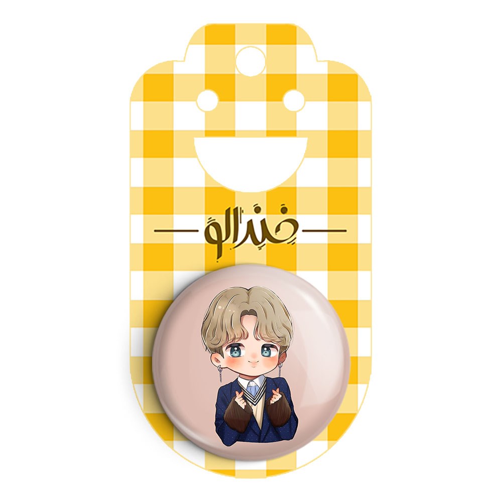 پیکسل 44 میلی متری جیمین Jimin گروه بی تی اس BTS خندالو با روکش سلفون حرارتی مات مخملی ضدخش و قطعه پشتی رنگی تولید شده است.پلاستیکی پشت پیکسل با سوزن یک تکه ثابت و بدون لغزش و جا به جایی، ایستایی بسیار بهتری نسبت به پشتی فلزی پیکسل دارند که این مهم در تولید این محصول نیز رعایت شده است.