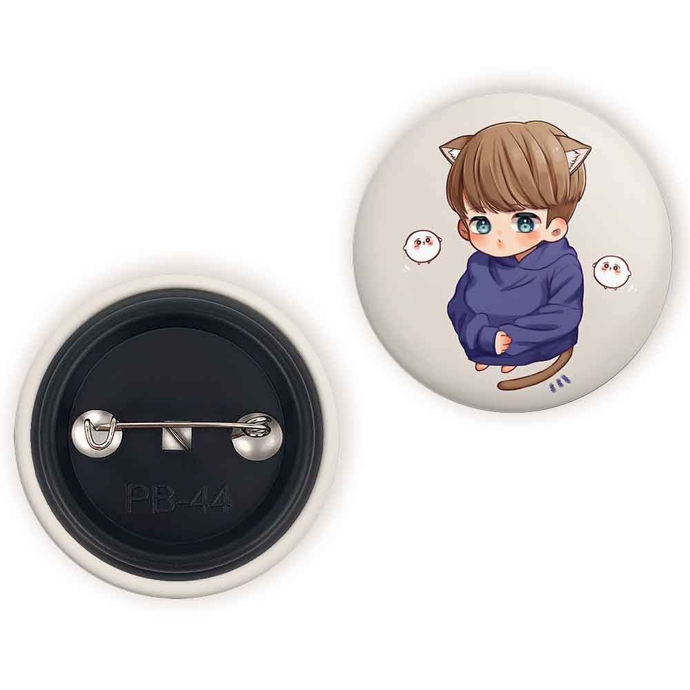 پیکسل 44 میلی متری جیمین Jimin گروه بی تی اس BTS خندالو با روکش سلفون حرارتی مات مخملی ضدخش و قطعه پشتی رنگی تولید شده است.پلاستیکی پشت پیکسل با سوزن یک تکه ثابت و بدون لغزش و جا به جایی، ایستایی بسیار بهتری نسبت به پشتی فلزی پیکسل دارند که این مهم در تولید این محصول نیز رعایت شده است.