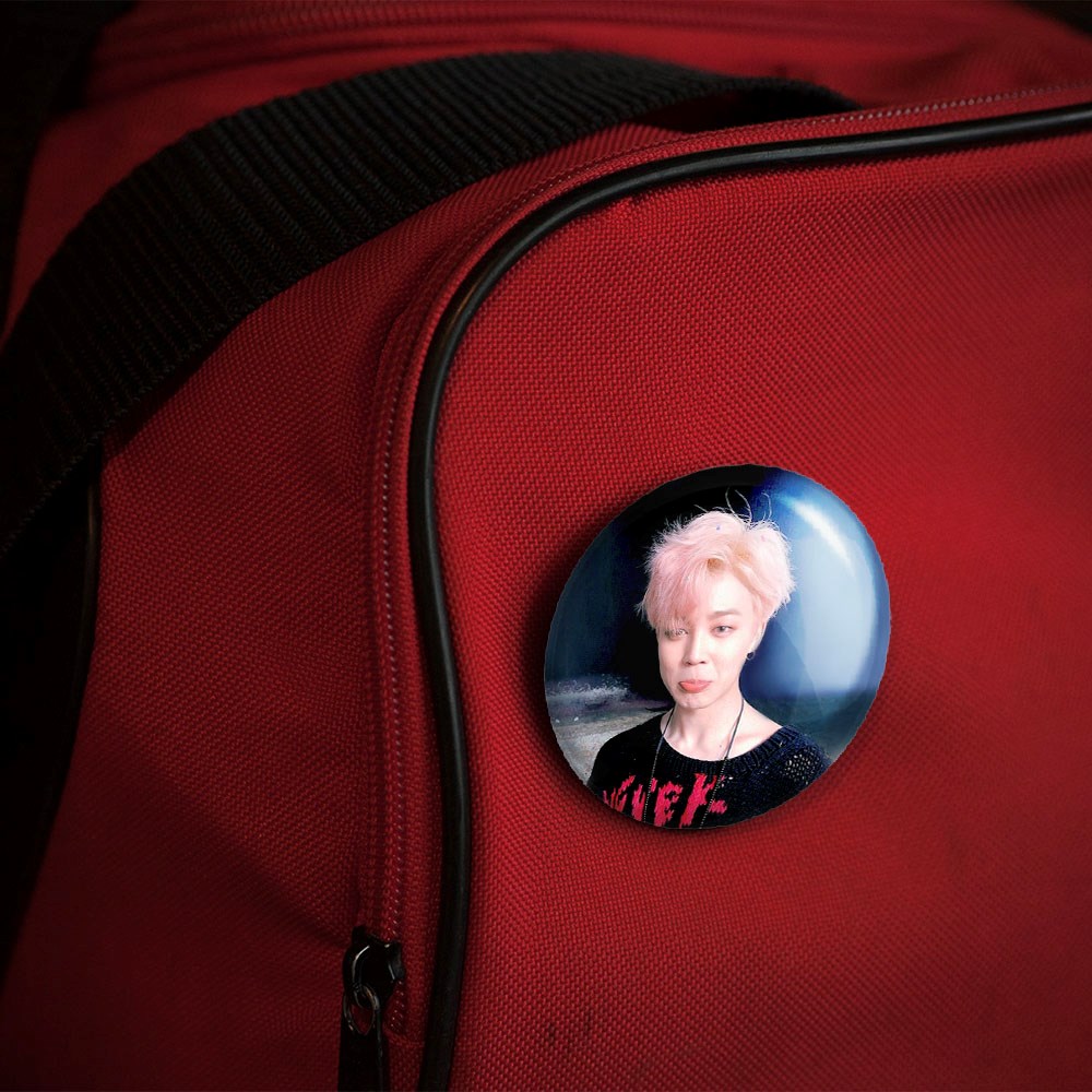 پیکسل 44 میلی متری جیمین Jimin گروه بی تی اس BTS خندالو با روکش سلفون حرارتی مات مخملی ضدخش و قطعه پشتی رنگی تولید شده است.پلاستیکی پشت پیکسل با سوزن یک تکه ثابت و بدون لغزش و جا به جایی، ایستایی بسیار بهتری نسبت به پشتی فلزی پیکسل دارند که این مهم در تولید این محصول نیز رعایت شده است.