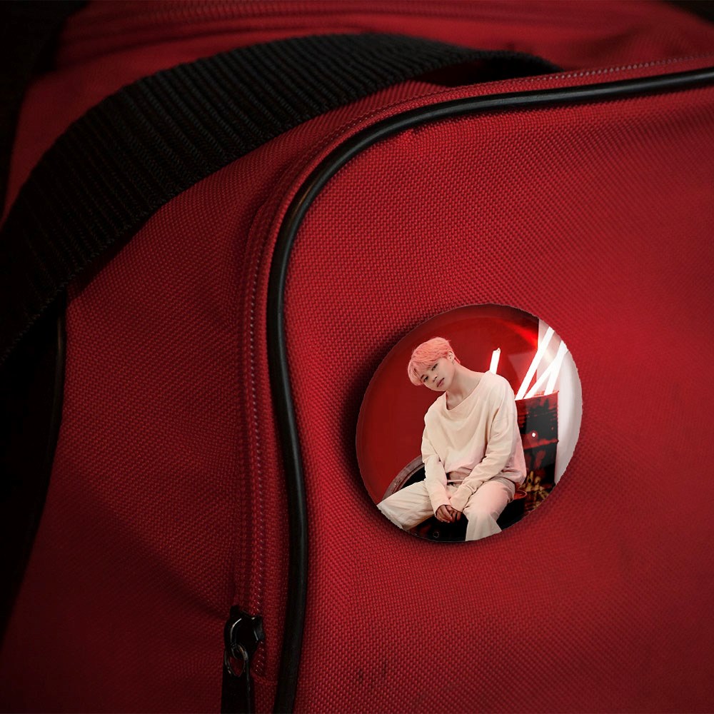 پیکسل 44 میلی متری جیمین Jimin گروه بی تی اس BTS خندالو با روکش سلفون حرارتی مات مخملی ضدخش و قطعه پشتی رنگی تولید شده است.پلاستیکی پشت پیکسل با سوزن یک تکه ثابت و بدون لغزش و جا به جایی، ایستایی بسیار بهتری نسبت به پشتی فلزی پیکسل دارند که این مهم در تولید این محصول نیز رعایت شده است.