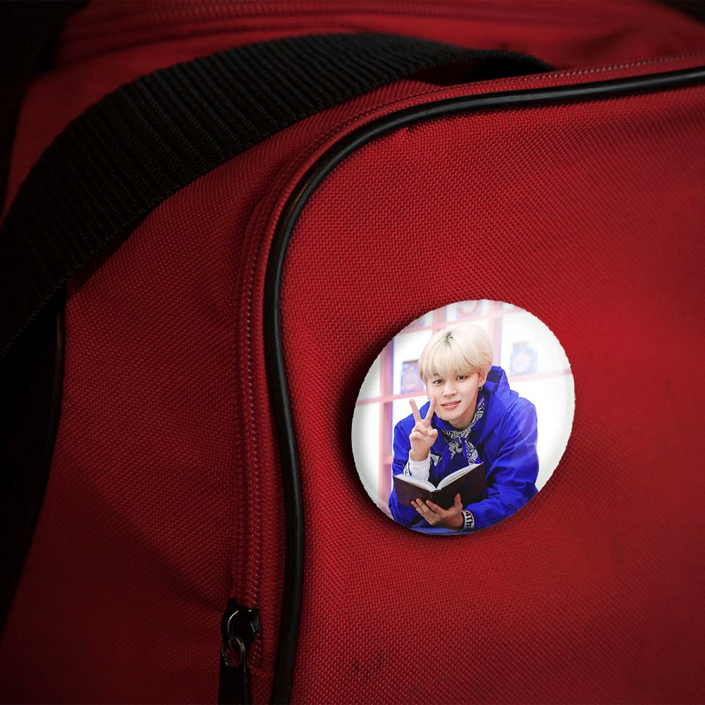 پیکسل 44 میلی متری جیمین Jimin گروه بی تی اس BTS خندالو با روکش سلفون حرارتی مات مخملی ضدخش و قطعه پشتی رنگی تولید شده است.پلاستیکی پشت پیکسل با سوزن یک تکه ثابت و بدون لغزش و جا به جایی، ایستایی بسیار بهتری نسبت به پشتی فلزی پیکسل دارند که این مهم در تولید این محصول نیز رعایت شده است.