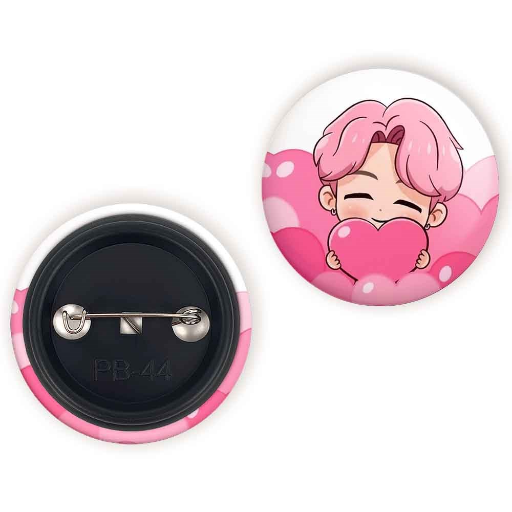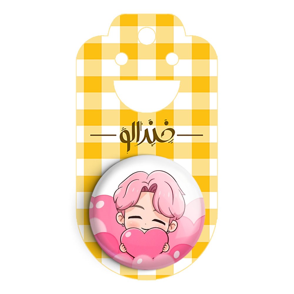پیکسل 44 میلی متری جیمین Jimin گروه بی تی اس BTS خندالو با روکش سلفون حرارتی مات مخملی ضدخش و قطعه پشتی رنگی تولید شده است.پلاستیکی پشت پیکسل با سوزن یک تکه ثابت و بدون لغزش و جا به جایی، ایستایی بسیار بهتری نسبت به پشتی فلزی پیکسل دارند که این مهم در تولید این محصول نیز رعایت شده است.