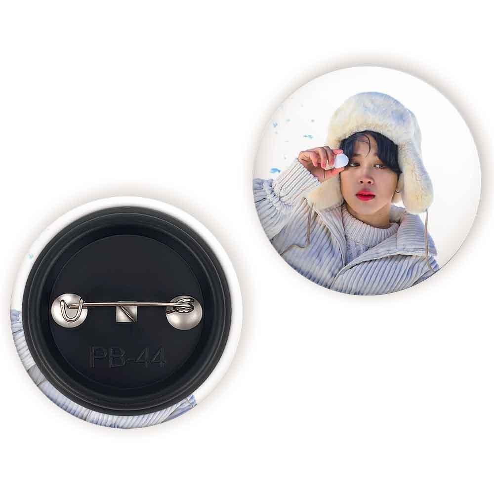 پیکسل 44 میلی متری جیمین Jimin گروه بی تی اس BTS خندالو با روکش سلفون حرارتی مات مخملی ضدخش و قطعه پشتی رنگی تولید شده است.پلاستیکی پشت پیکسل با سوزن یک تکه ثابت و بدون لغزش و جا به جایی، ایستایی بسیار بهتری نسبت به پشتی فلزی پیکسل دارند که این مهم در تولید این محصول نیز رعایت شده است.