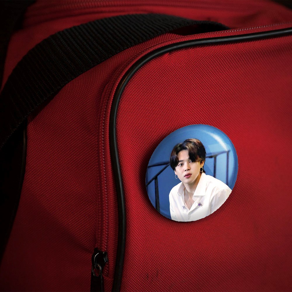 پیکسل 44 میلی متری جیمین Jimin گروه بی تی اس BTS خندالو با روکش سلفون حرارتی مات مخملی ضدخش و قطعه پشتی رنگی تولید شده است.پلاستیکی پشت پیکسل با سوزن یک تکه ثابت و بدون لغزش و جا به جایی، ایستایی بسیار بهتری نسبت به پشتی فلزی پیکسل دارند که این مهم در تولید این محصول نیز رعایت شده است.