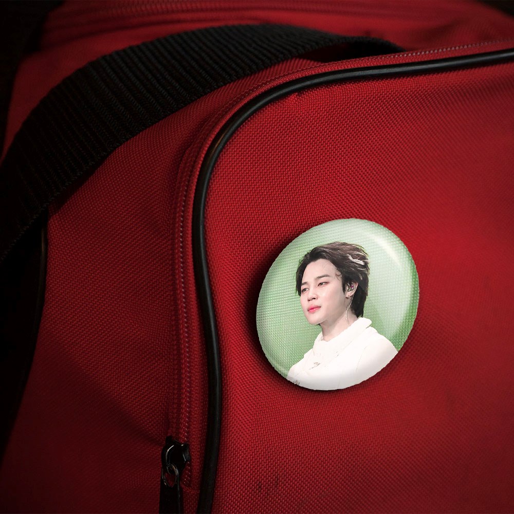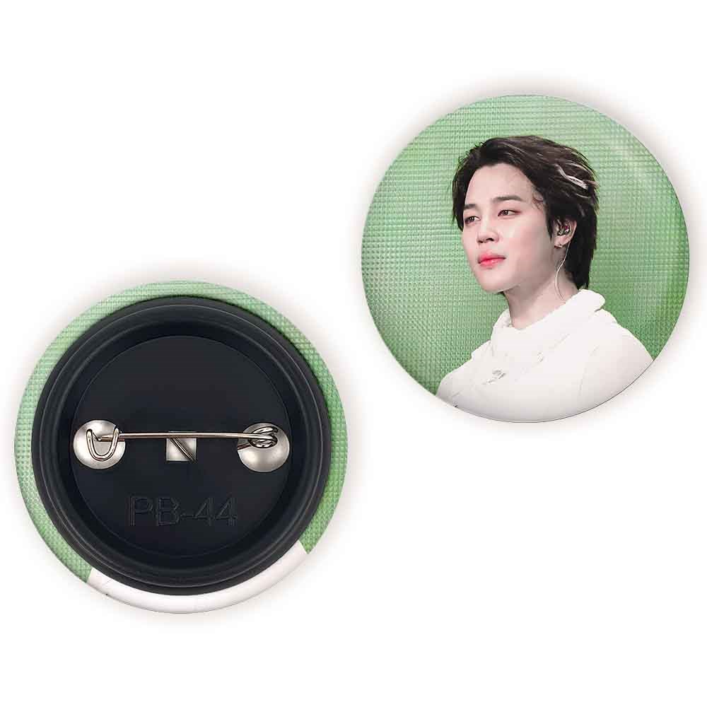 پیکسل 44 میلی متری جیمین Jimin گروه بی تی اس BTS خندالو با روکش سلفون حرارتی مات مخملی ضدخش و قطعه پشتی رنگی تولید شده است.پلاستیکی پشت پیکسل با سوزن یک تکه ثابت و بدون لغزش و جا به جایی، ایستایی بسیار بهتری نسبت به پشتی فلزی پیکسل دارند که این مهم در تولید این محصول نیز رعایت شده است.