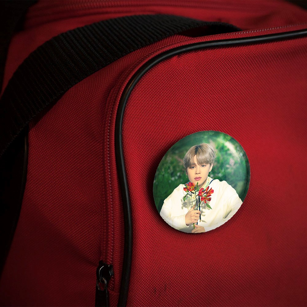 پیکسل 44 میلی متری جیمین Jimin گروه بی تی اس BTS خندالو با روکش سلفون حرارتی مات مخملی ضدخش و قطعه پشتی رنگی تولید شده است.پلاستیکی پشت پیکسل با سوزن یک تکه ثابت و بدون لغزش و جا به جایی، ایستایی بسیار بهتری نسبت به پشتی فلزی پیکسل دارند که این مهم در تولید این محصول نیز رعایت شده است.