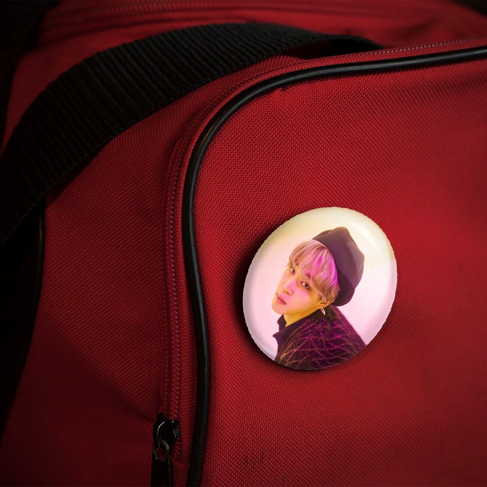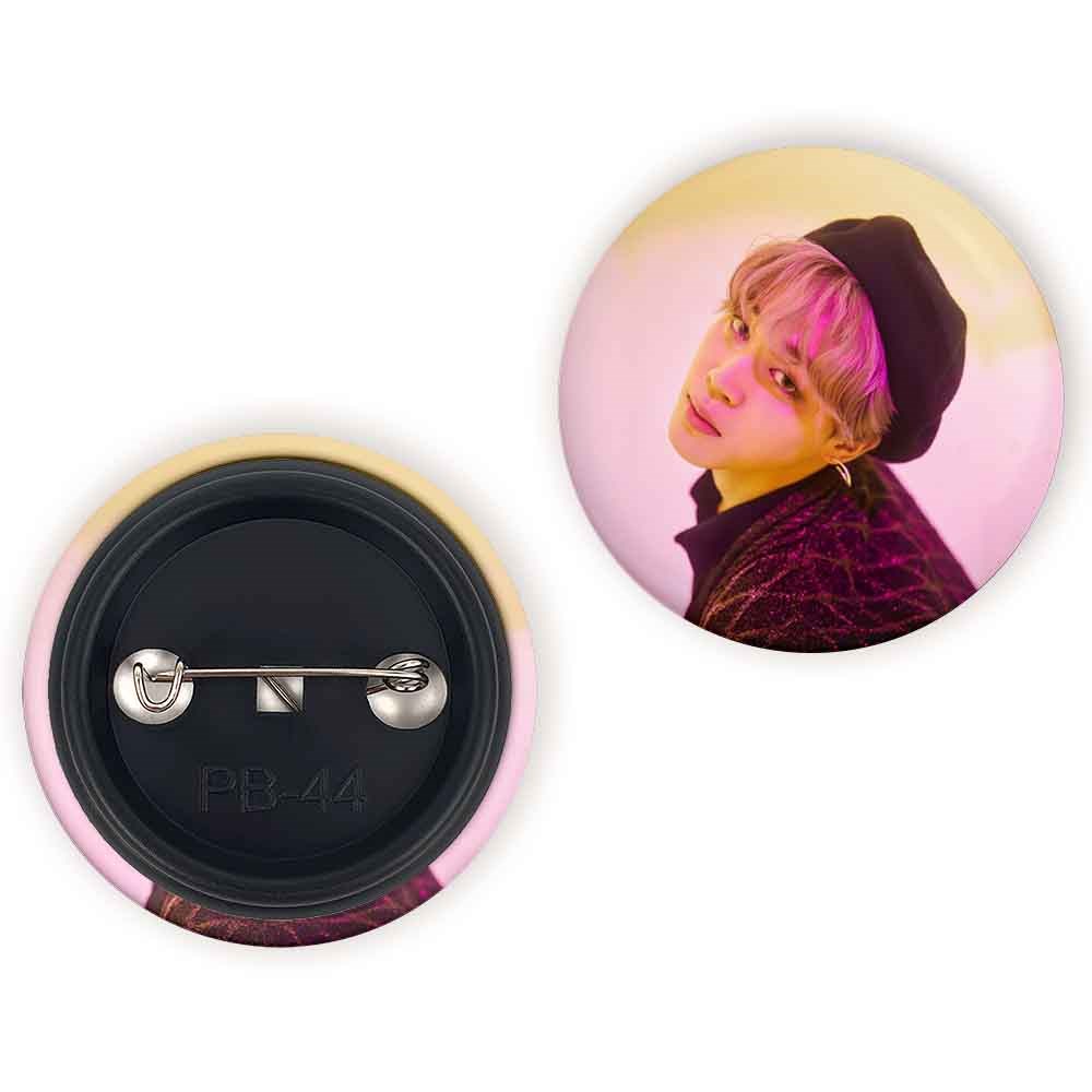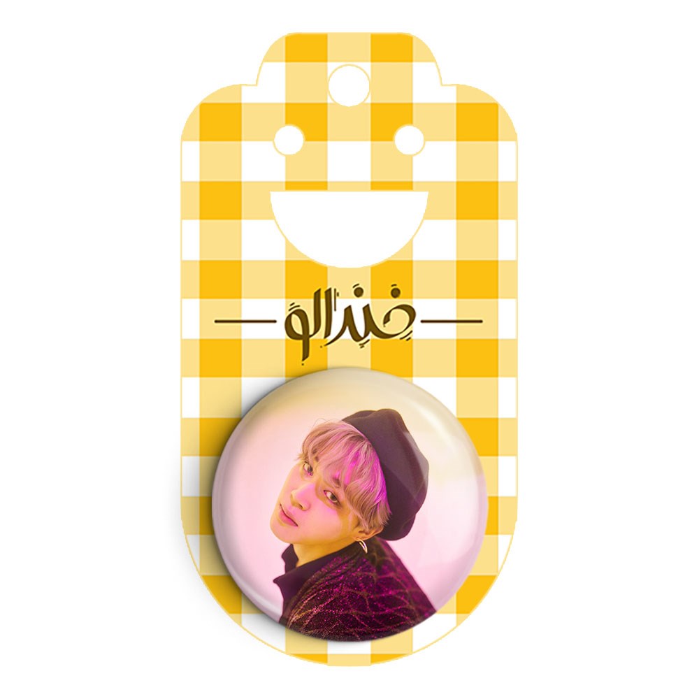 پیکسل 44 میلی متری جیمین Jimin گروه بی تی اس BTS خندالو با روکش سلفون حرارتی مات مخملی ضدخش و قطعه پشتی رنگی تولید شده است.پلاستیکی پشت پیکسل با سوزن یک تکه ثابت و بدون لغزش و جا به جایی، ایستایی بسیار بهتری نسبت به پشتی فلزی پیکسل دارند که این مهم در تولید این محصول نیز رعایت شده است.