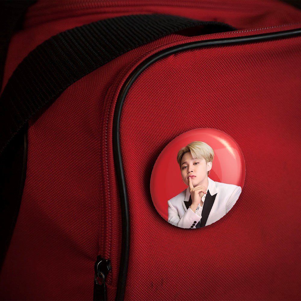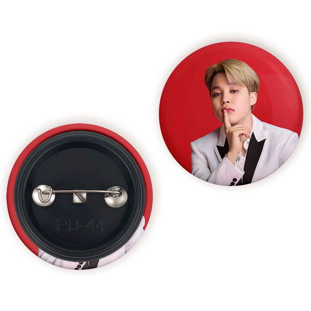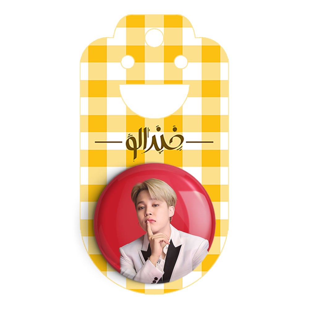 پیکسل 44 میلی متری جیمین Jimin گروه بی تی اس BTS خندالو با روکش سلفون حرارتی مات مخملی ضدخش و قطعه پشتی رنگی تولید شده است.پلاستیکی پشت پیکسل با سوزن یک تکه ثابت و بدون لغزش و جا به جایی، ایستایی بسیار بهتری نسبت به پشتی فلزی پیکسل دارند که این مهم در تولید این محصول نیز رعایت شده است.