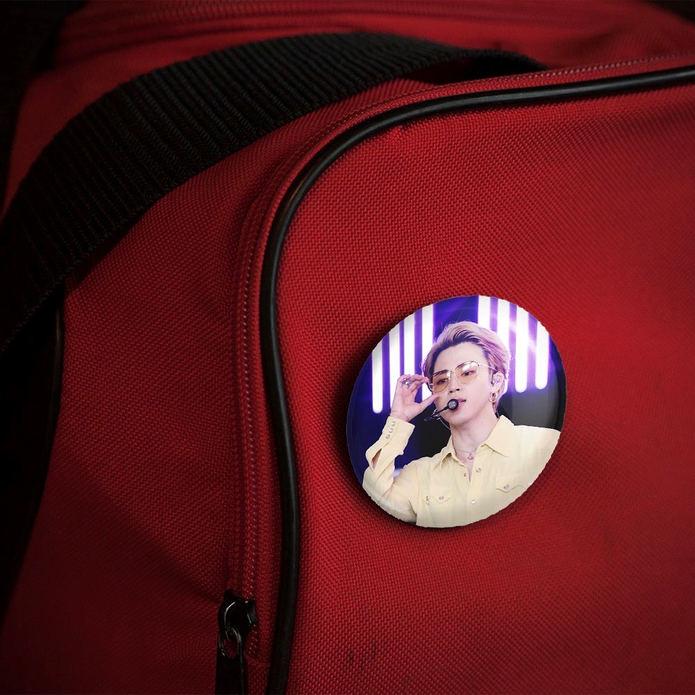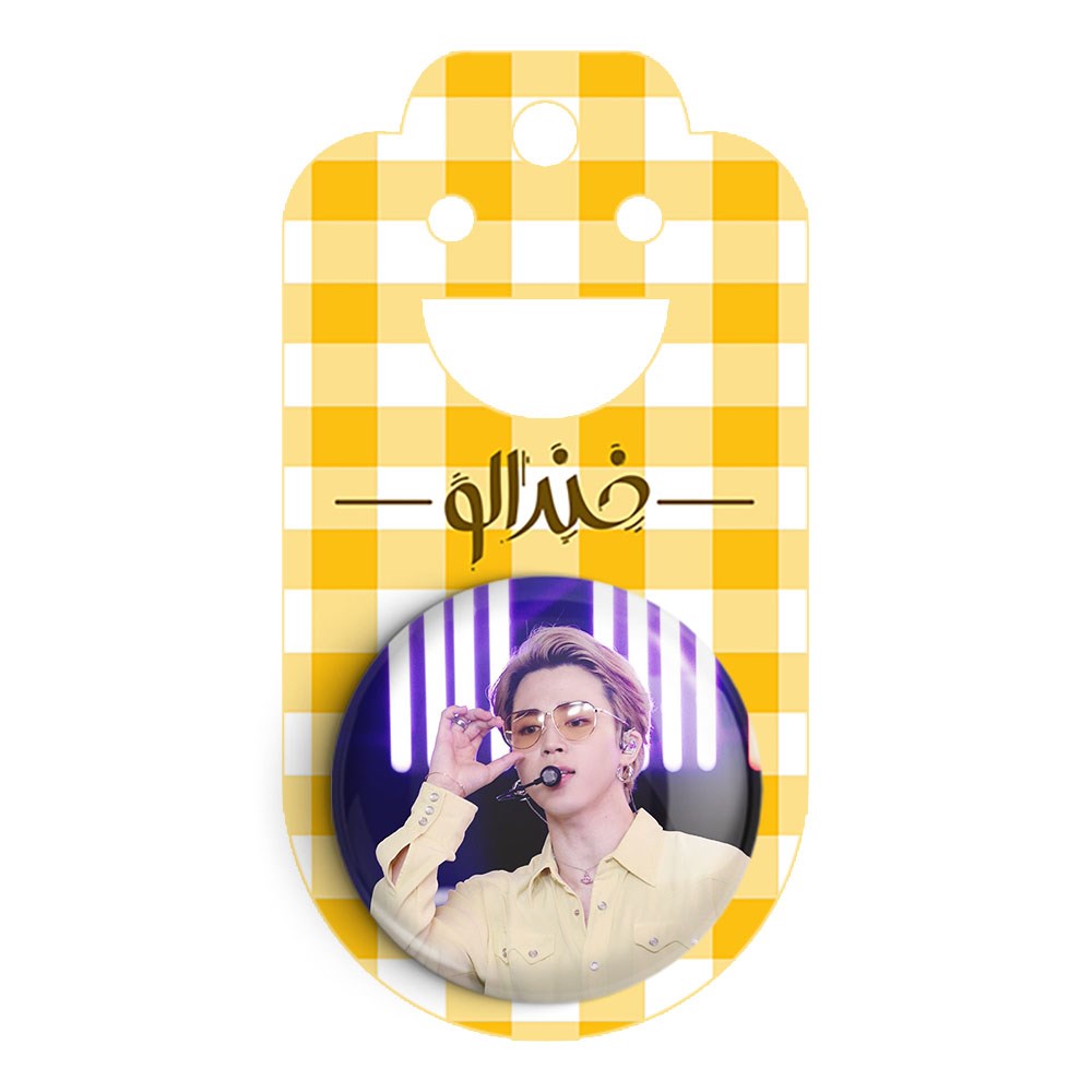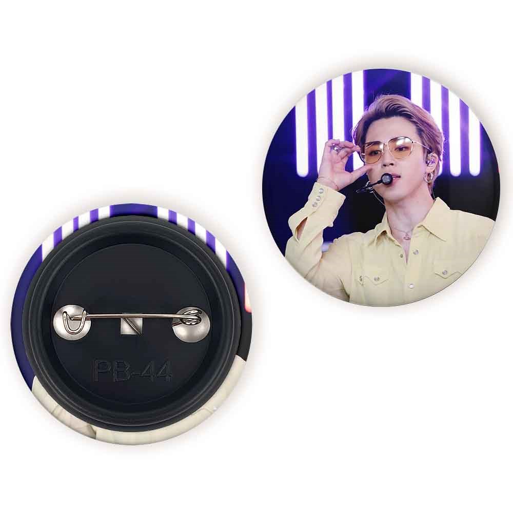 پیکسل 44 میلی متری جیمین Jimin گروه بی تی اس BTS خندالو با روکش سلفون حرارتی مات مخملی ضدخش و قطعه پشتی رنگی تولید شده است.پلاستیکی پشت پیکسل با سوزن یک تکه ثابت و بدون لغزش و جا به جایی، ایستایی بسیار بهتری نسبت به پشتی فلزی پیکسل دارند که این مهم در تولید این محصول نیز رعایت شده است.
