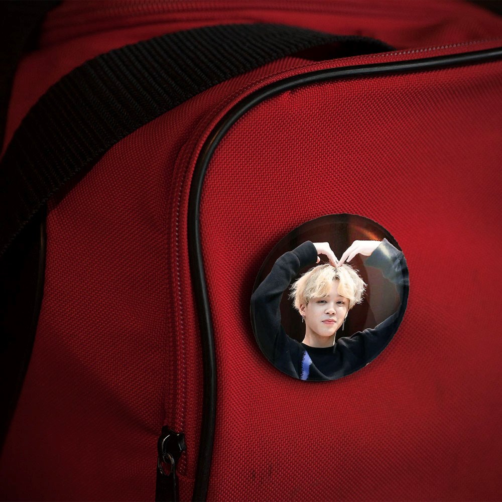 پیکسل 44 میلی متری جیمین Jimin گروه بی تی اس BTS خندالو با روکش سلفون حرارتی مات مخملی ضدخش و قطعه پشتی رنگی تولید شده است.پلاستیکی پشت پیکسل با سوزن یک تکه ثابت و بدون لغزش و جا به جایی، ایستایی بسیار بهتری نسبت به پشتی فلزی پیکسل دارند که این مهم در تولید این محصول نیز رعایت شده است.
