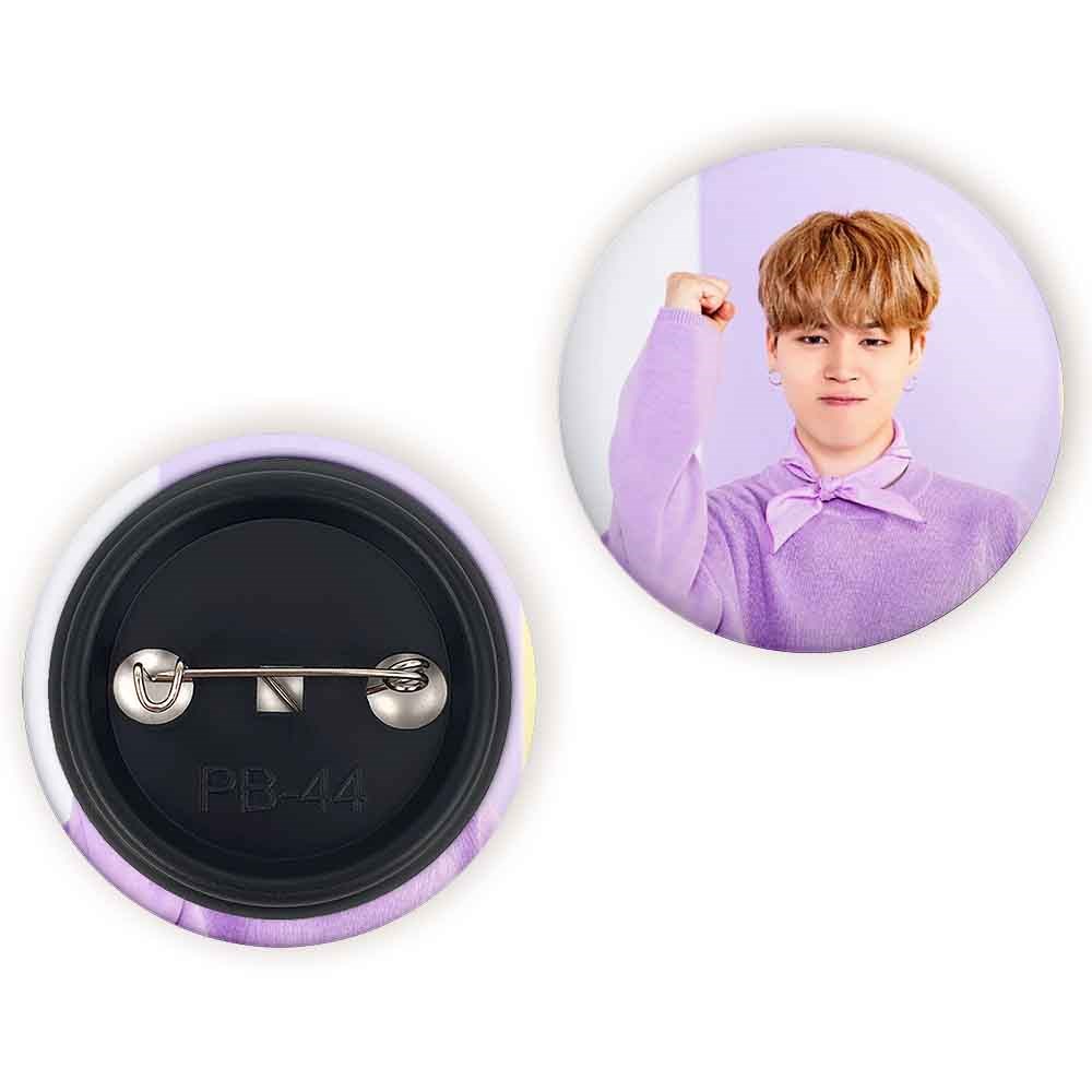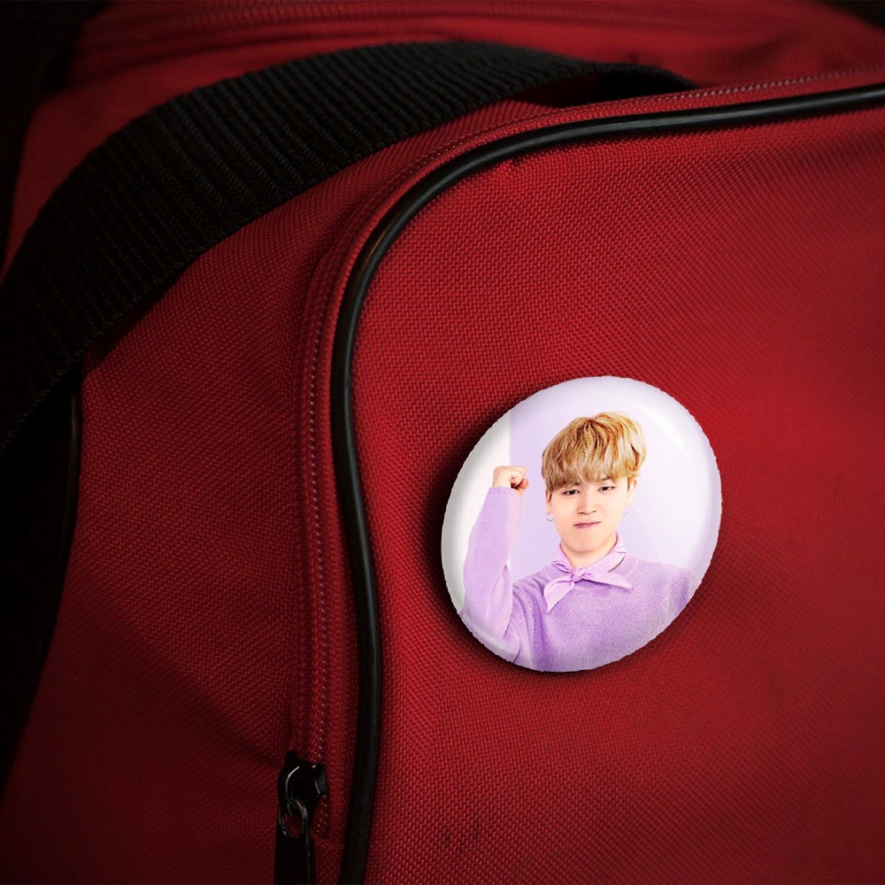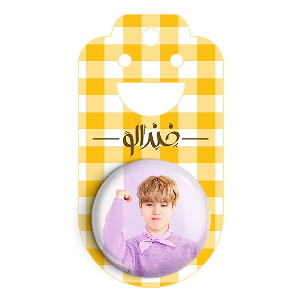 پیکسل 44 میلی متری جیمین Jimin گروه بی تی اس BTS خندالو با روکش سلفون حرارتی مات مخملی ضدخش و قطعه پشتی رنگی تولید شده است.پلاستیکی پشت پیکسل با سوزن یک تکه ثابت و بدون لغزش و جا به جایی، ایستایی بسیار بهتری نسبت به پشتی فلزی پیکسل دارند که این مهم در تولید این محصول نیز رعایت شده است.