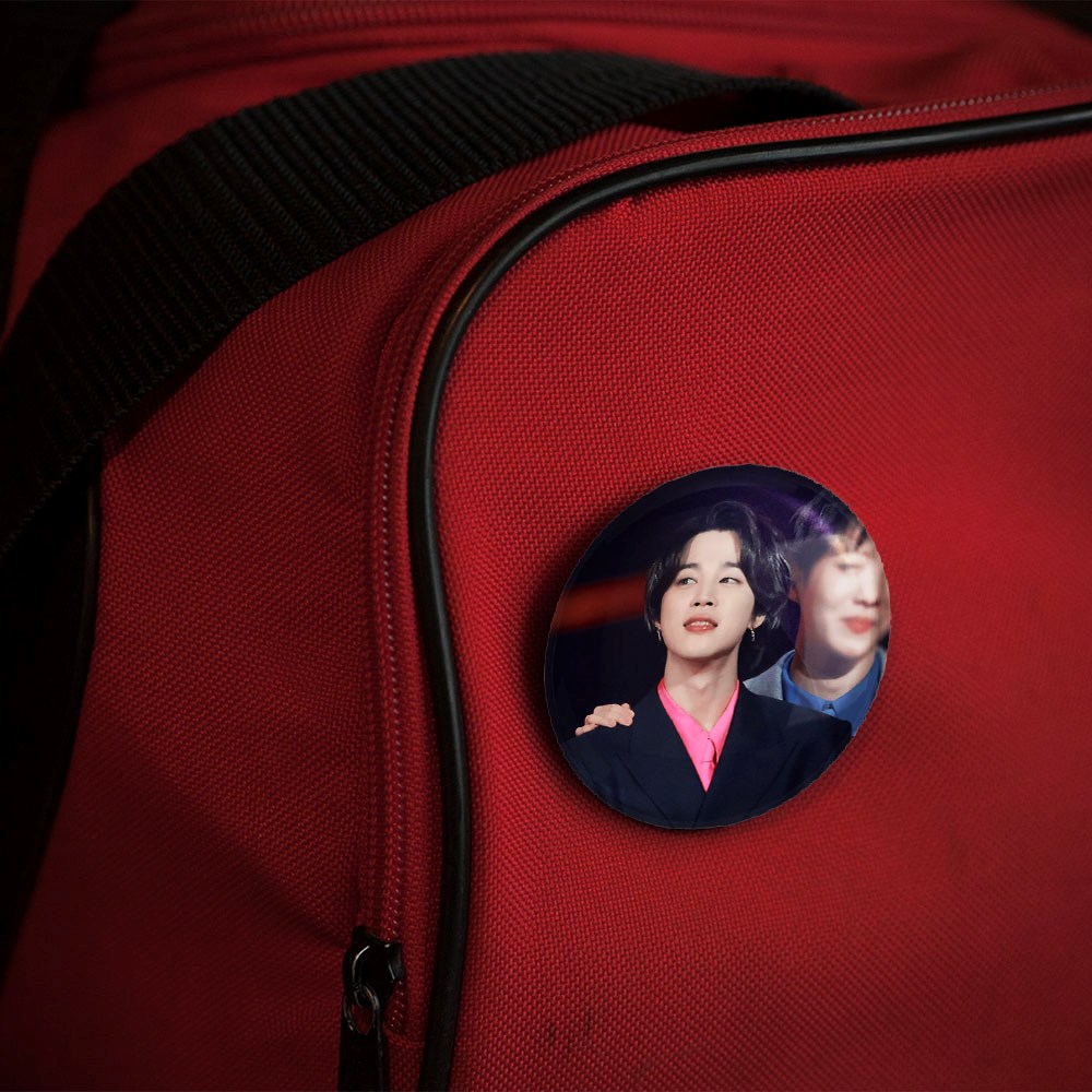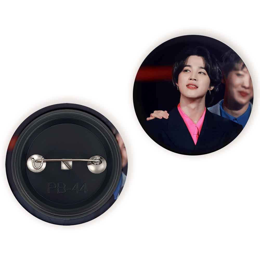 پیکسل 44 میلی متری جیمین Jimin گروه بی تی اس BTS خندالو با روکش سلفون حرارتی مات مخملی ضدخش و قطعه پشتی رنگی تولید شده است.پلاستیکی پشت پیکسل با سوزن یک تکه ثابت و بدون لغزش و جا به جایی، ایستایی بسیار بهتری نسبت به پشتی فلزی پیکسل دارند که این مهم در تولید این محصول نیز رعایت شده است.